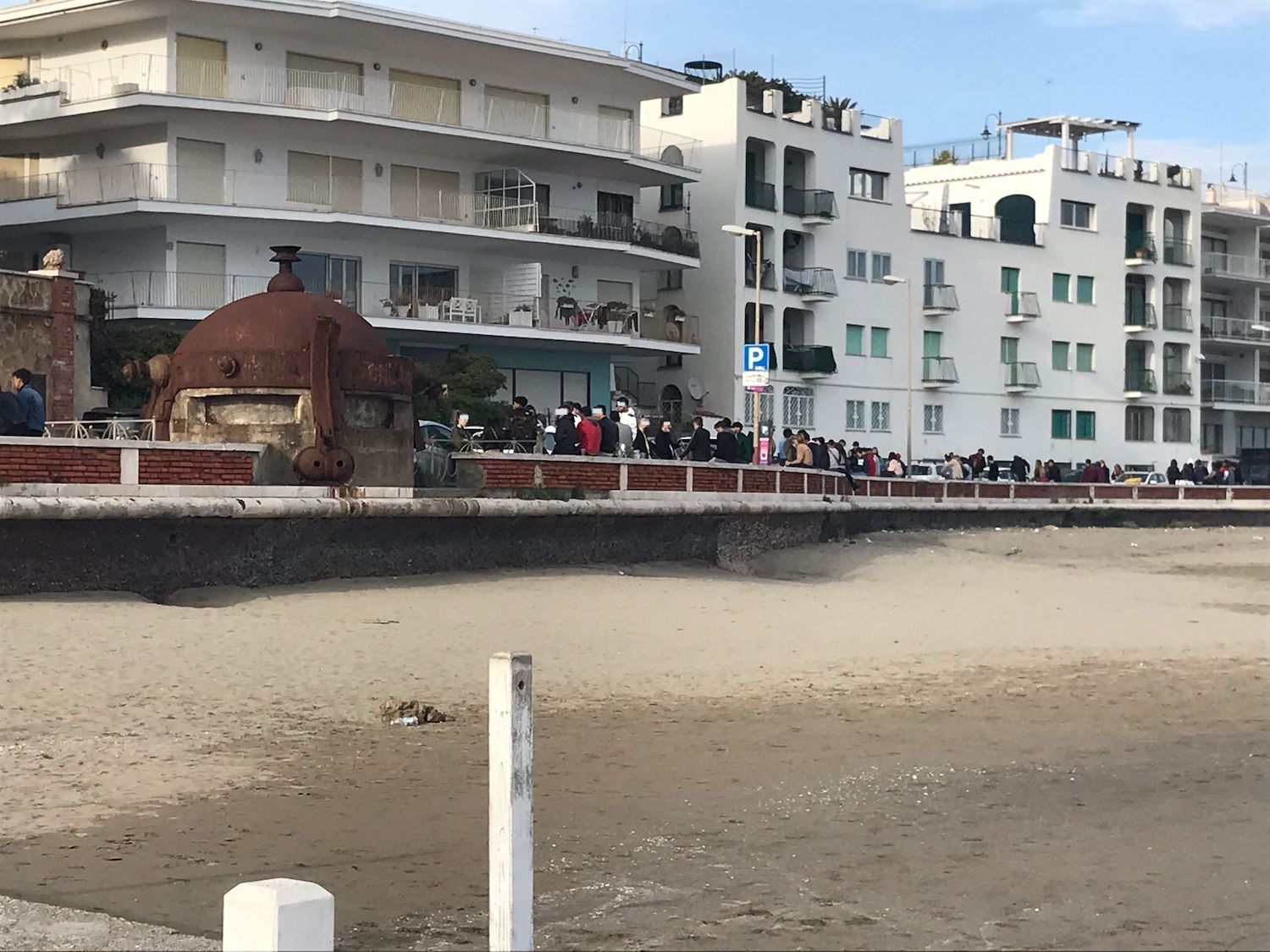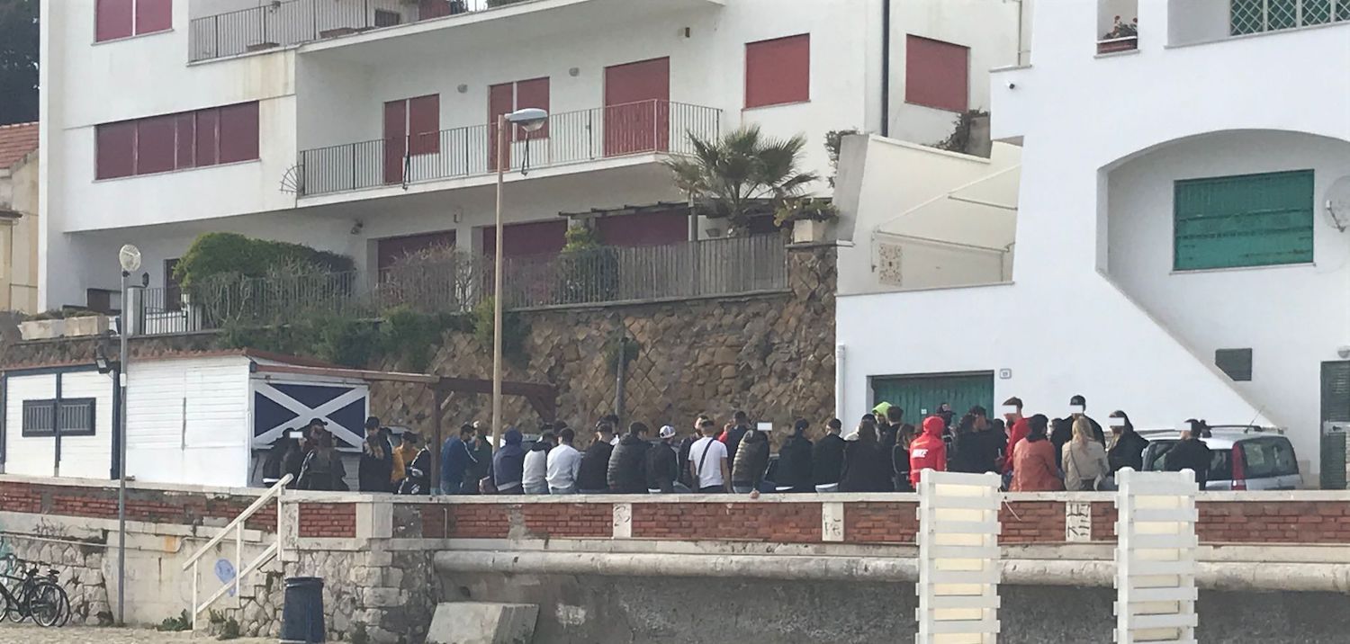 Una fila lunghissima di giovani, di età compresa tra i 15 e i 25 anni, sul lungomare antistante la spiaggia libera Marinaretti, a Nettuno, al confine con Anzio. Tutti insieme come in un qualsiasi sabato pomeriggio da trascorrere sul muretto, a ridere e scherzare, senza mascherina, come si poteva fare prima della pandemia e come speriamo si possa fare di nuovo il prima possibile, ma come purtroppo non si può – per il bene di tutti – fare adesso.