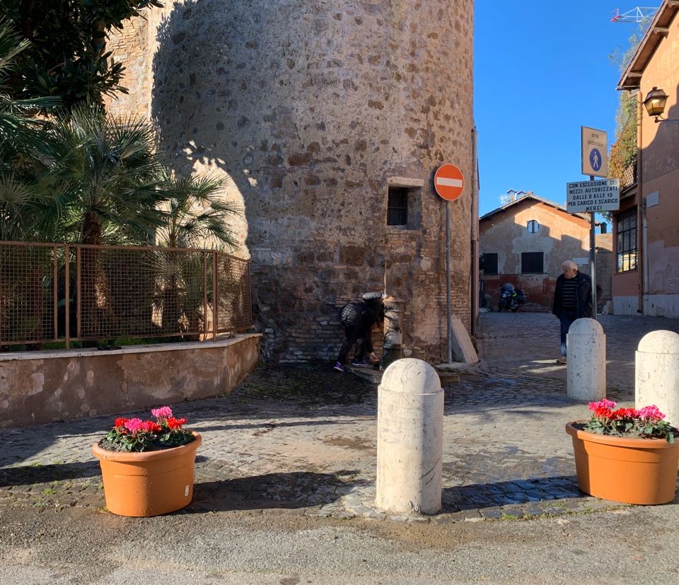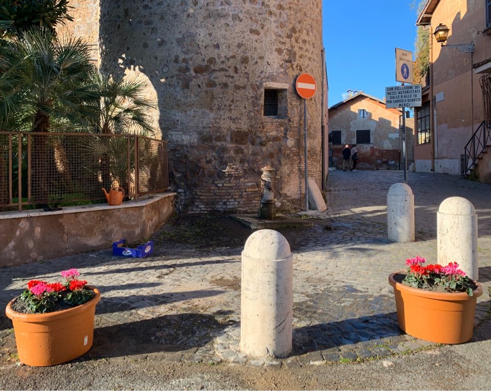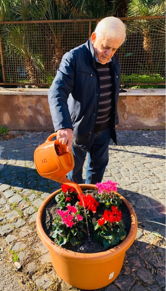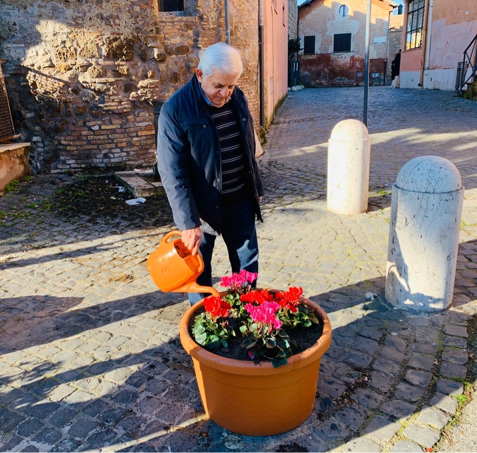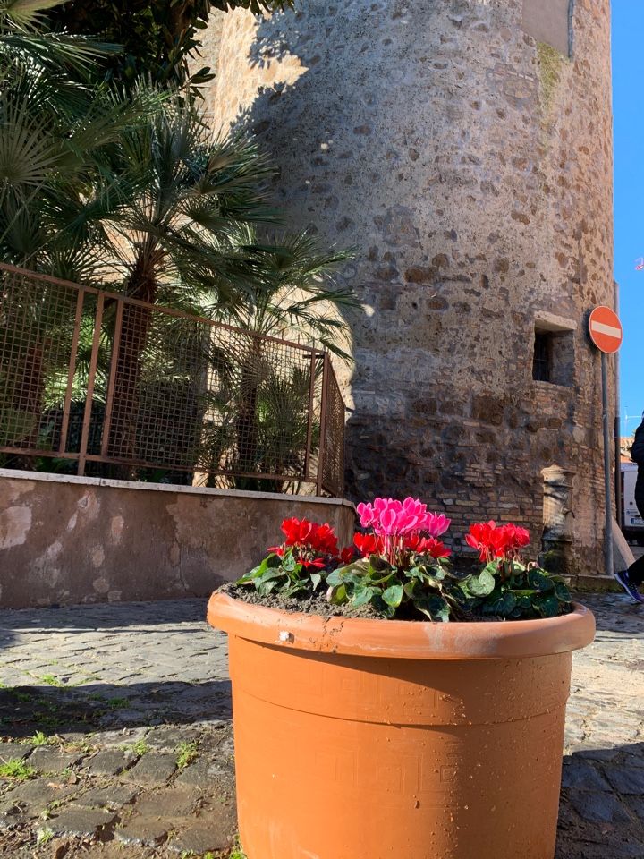 E pe rimedio ha messo n’par de vasi, pieni de piante, co li ciclamini colorati, ai pedi de la torre de nordeste, pe fajeli gode’ a li cittadini.