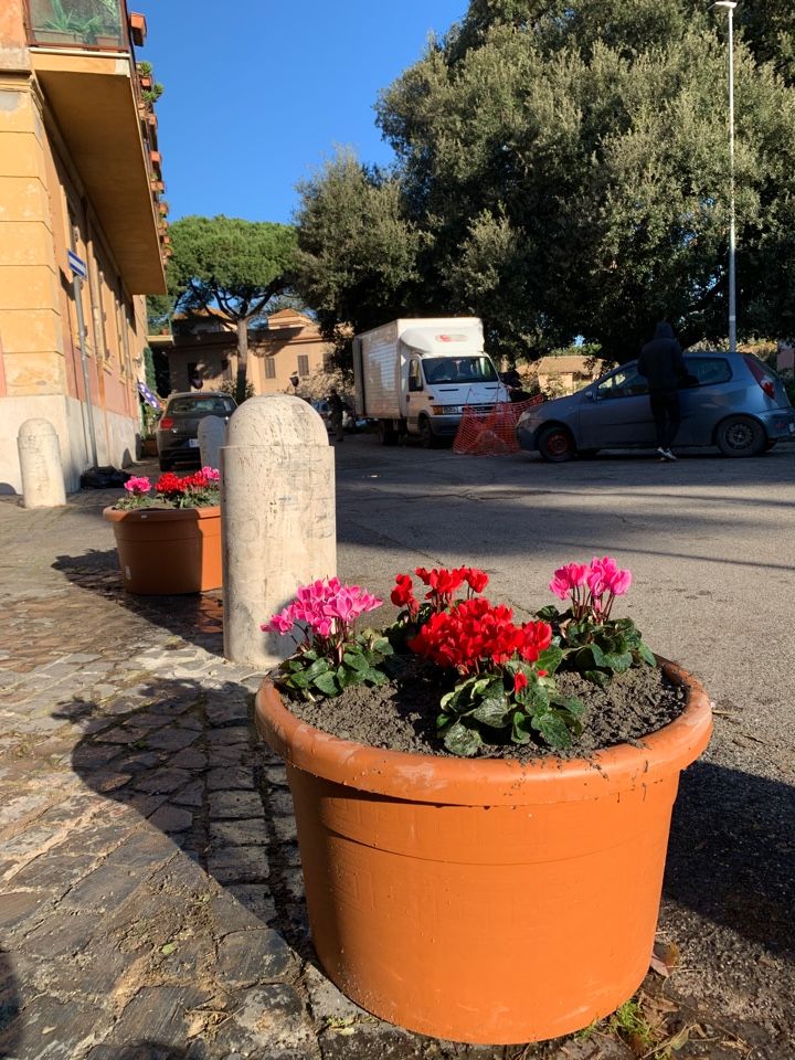 Il Direttivo del Comitato Ostia Antica Saline abbellisce con un tocco di colore, posizionando due fioriere con ciclamini multicolor l’ingresso del Borgo di Ostia Antica, in via Gesualdo, con il beneplacito e  il plauso dei residenti, che hanno dimostrato gradimento e aggregazione.