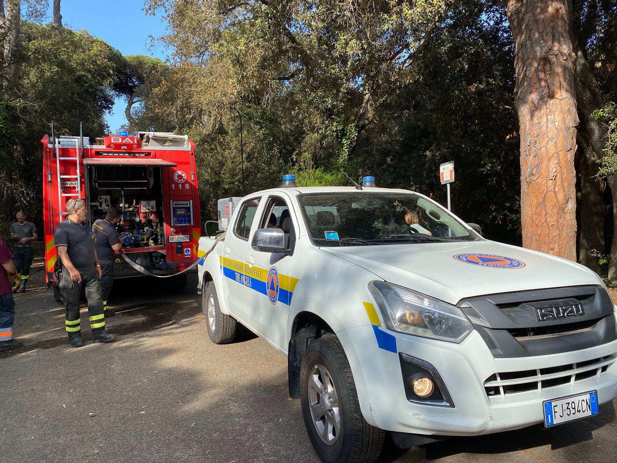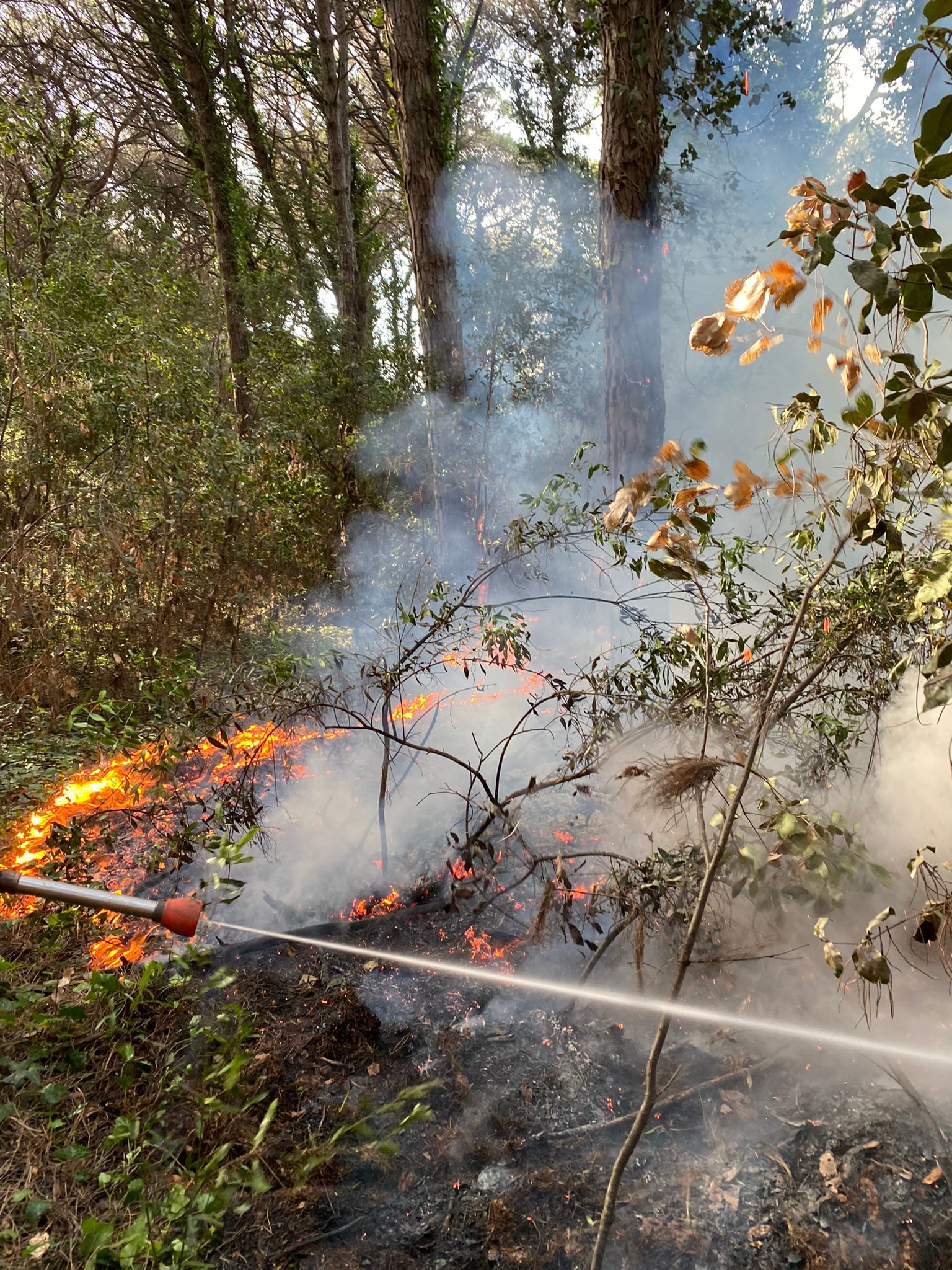 Incendio nella pineta, l’allarme e i soccorsi