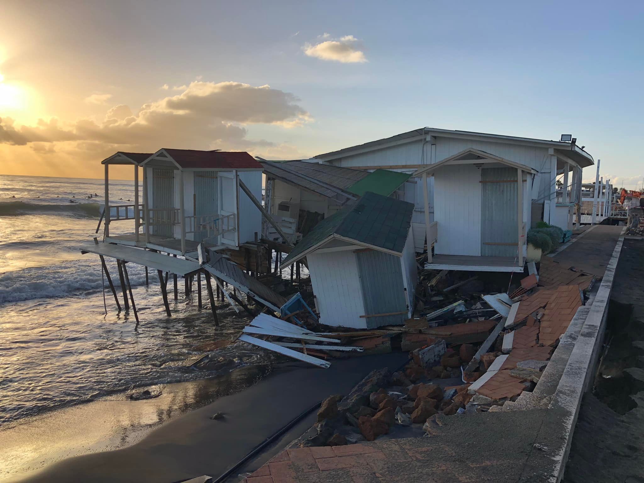 Cabine divelte, distrutte e trascinate via dalla forza delle onde. Lo scenario che si presenta agli occhi di Franco Petrini, titolare degli stabilimenti La Pinetina e Nuova Pineta, a Ostia, all’indomani dell’ultima mareggiata è desolante. L’ondata di maltempo che ha flagellato il litorale romano ha colpito in modo inesorabile questo tratto di costa, andando a fare danni soprattutto laddove l’erosione era già evidente e sempre più avanzata. Gli stabilimenti più danneggiati dalla mareggiata del 2 dicembre, oltre al Kursaal – dove molte cabine sono letteralmente crollate nel corso del temporale – sono proprio La Pinetina e Nuova Pineta.