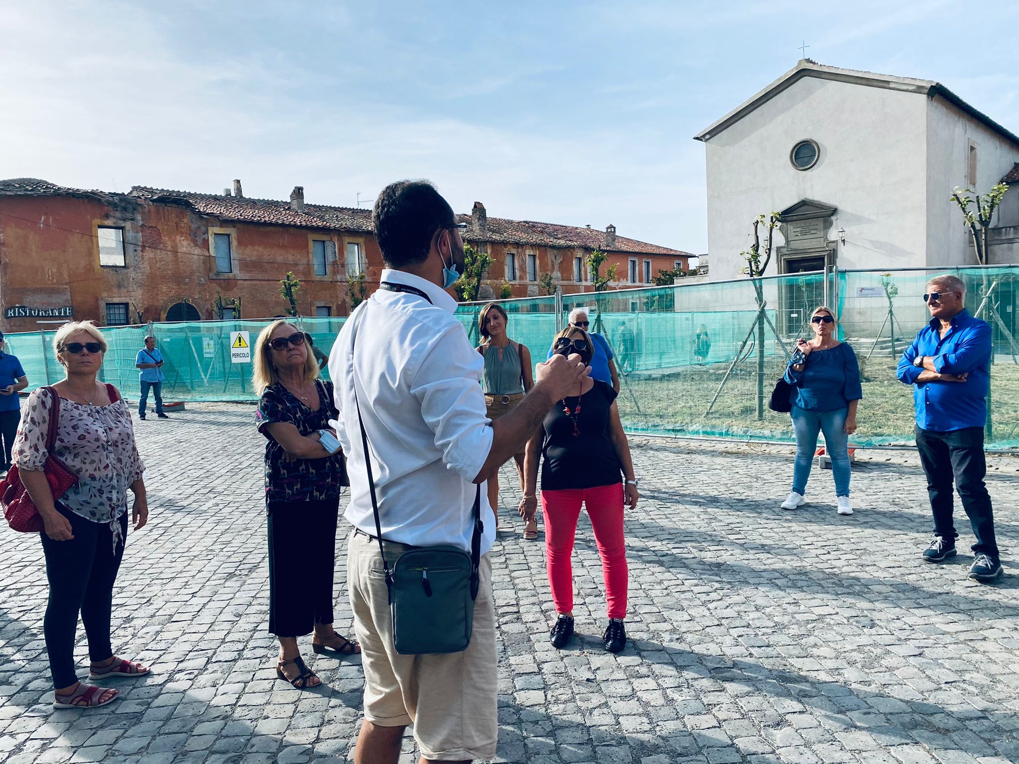 “Qui potete ammirare dove, fino al secolo scorso, aveva sede l’antico ufficio postale, mentre pochi metri più avanti c’era lo studio del medico condotto”. E’ mentre Giacomo Castro pronuncia queste parole, illustrando nei dettagli i vari edifici che compongono il Borgo di Pratica di Mare, che la visita guidata organizzata dall’associazione Latium Vetus per oggi, sabato 25 settembre, dalle ore 16:00 alle ore 18:00, viene interrotta dall’arrivo di una pattuglia dei Carabinieri della stazione di Torvaianica. E’ veramente assurdo quanto successo questo pomeriggio a Pomezia, di cui siamo testimoni oculari.