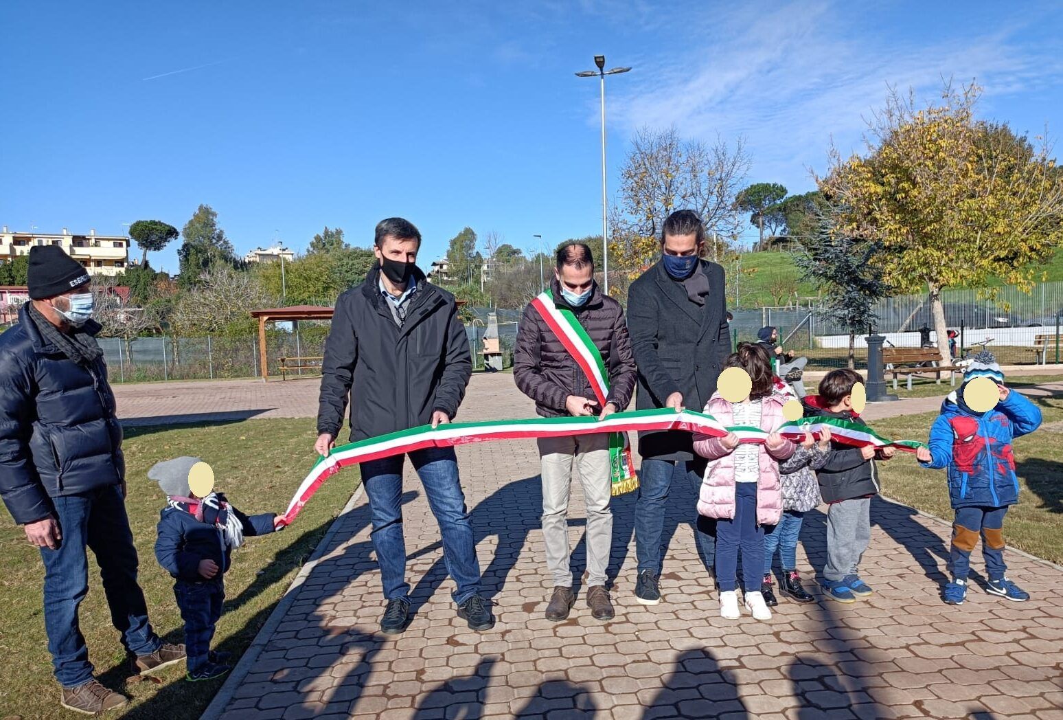 Pomezia. E’ stata inaugurata questa mattina la nuova area verde di Campo Jemini, tra l’angolo di via dei Fiordalisi e via delle Campanule. Alla cerimonia hanno partecipato il Comitato di Quartiere, la famiglia Maratta – che ha donato un albero di carrubo messo a dimora qualche giorno fa – e una rappresentanza della Giunta e del Consiglio comunale. L’area verde rientra nel vasto progetto di riqualificazione dell’area che ha visto la realizzazione di un parco pubblico attrezzato con un’area gioco, percorsi pedonali, recinzioni, area sgambamento cani, due gazebo con area barbecue, una bacheca in legno per le informazioni di quartiere ed infine la posa di prato in tutto il parco e la messa a dimora degli alberi. Insomma, un gran bel modo per trascorrere all’aperto le giornate più mansuete di questo inverno. Ma soprattutto d’estate i cittadini potranno godere di quest’area, che è stata intitolata a Ciro Di Vivona, storico presidente del Comitato del Quartiere Campo Jemini e che da tempo sognava un’area verde per i bambini. Il parco è stato attrezzato con un’area gioco, percorsi pedonali, recinzioni, area sgambamento cani, due gazebo con area barbecue, una bacheca in legno per le informazioni di quartiere ed infine la posa di prato in tutto il parco e la messa a dimora degli alberi.