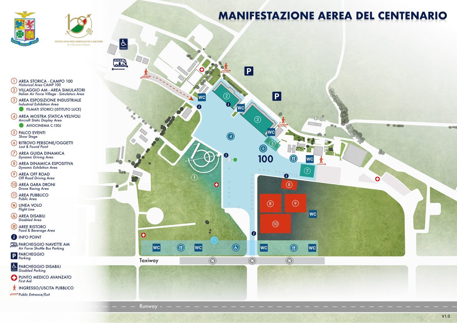 In occasione della manifestazione sono diverse le aree di parcheggio predisposte così come alcuni servizi navetta da e per l’aeroporto. Prevista inoltre una zona riservata alle persone con disabilità e un’area dedicata alla mobilità per moto, biciclette, monopattini elettrici, motoveicoli.