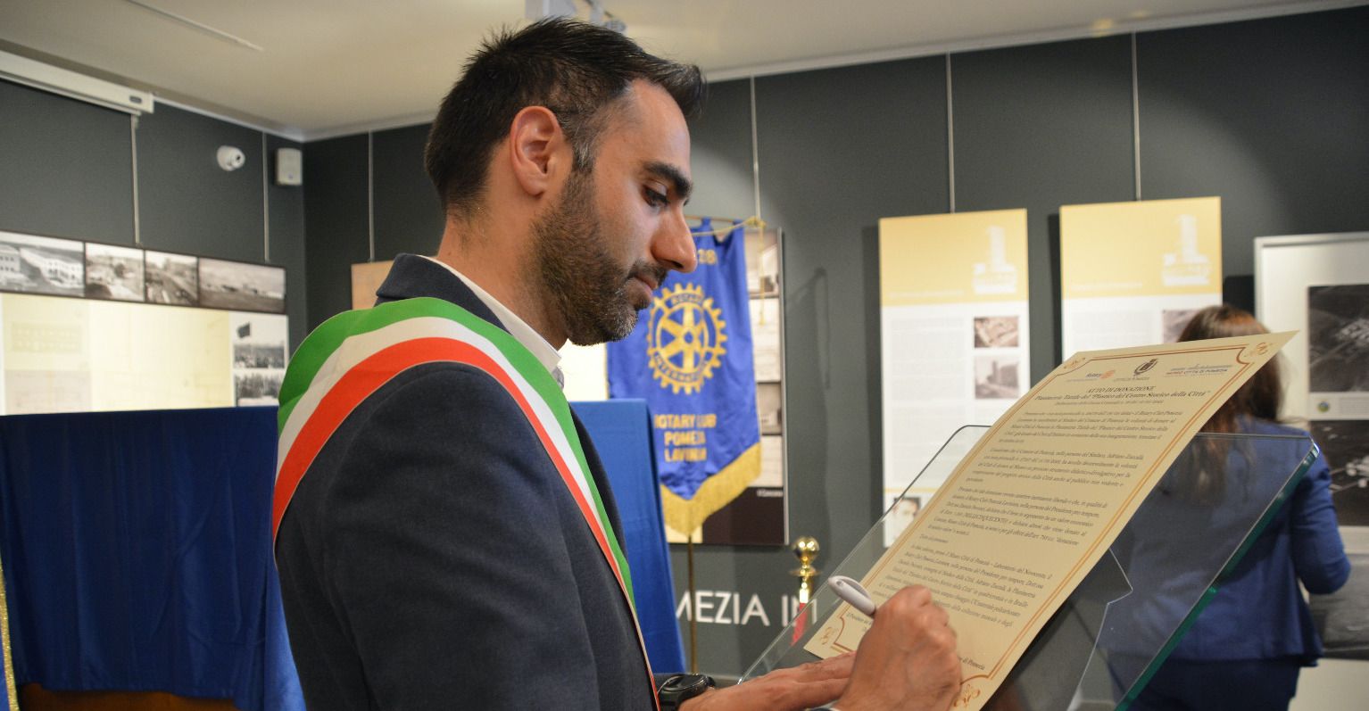 Pomezia. Una cerimonia importante, svoltasi questa mattina all’attenzione di tutti: parliamo della cerimonia di donazione della planimetria tattile del plastico centro storico cittadino al Museo Città di Pomezia – Laboratorio del Novecento da parte del Rotary Club Pomezia Lavinium.