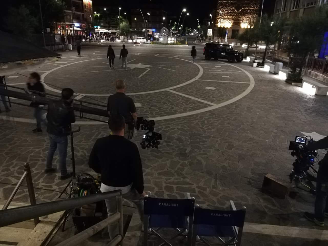 La piazza del belvedere è stata “prenotata” fino alle 2 di notte. Sin dal tardo pomeriggio tecnici e troupe sono arrivati a Torvaianica e, dopo aver allestito il set, hanno iniziato con le riprese.