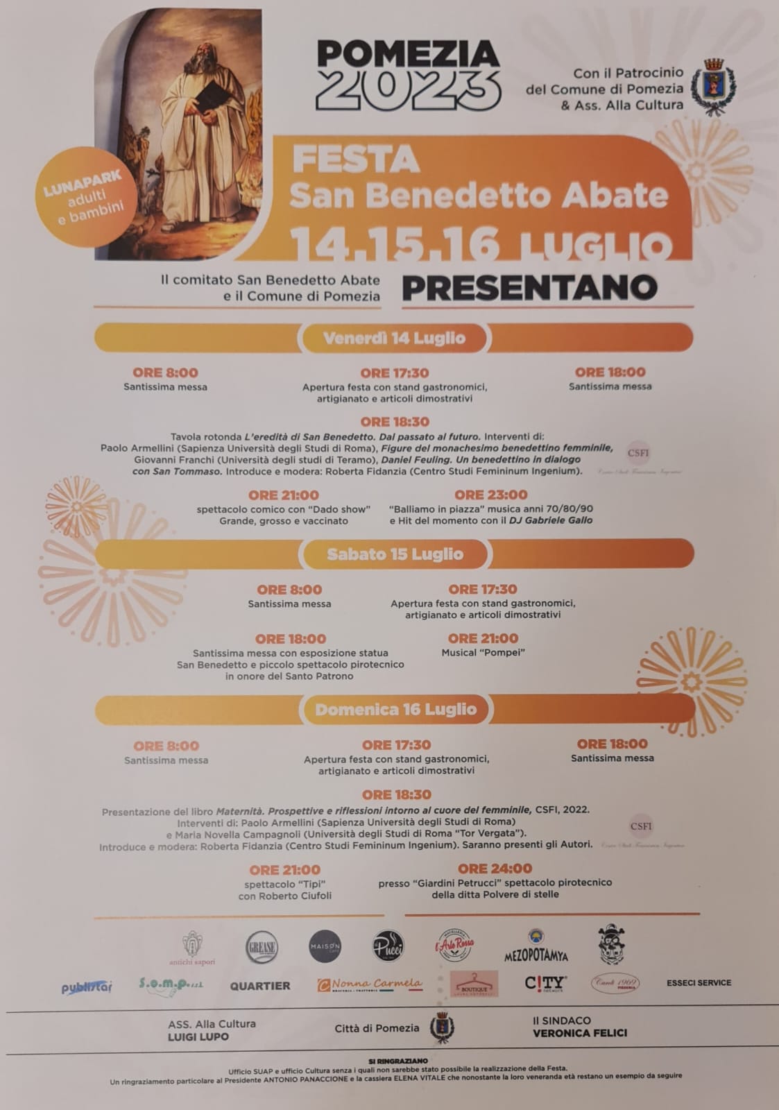 La locandina della Festa di San Benedetto a Pomezia 2023