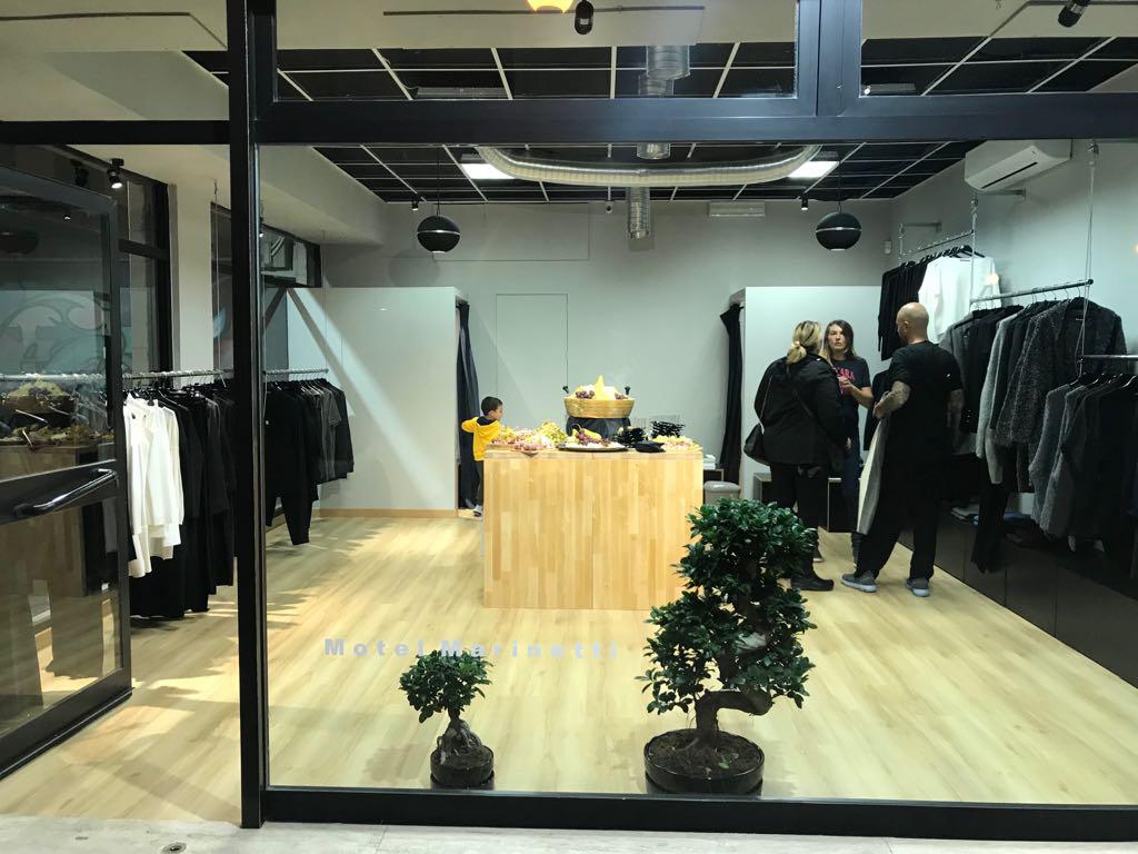 Tutto questo è Motel Marinetti inaugurato a Largo Catone, luminoso, essenziale e minimale nell’esposizione dei capi uomo e donna. Il grande bonsai al centro dello spazio ruba l’occhio ai passanti.