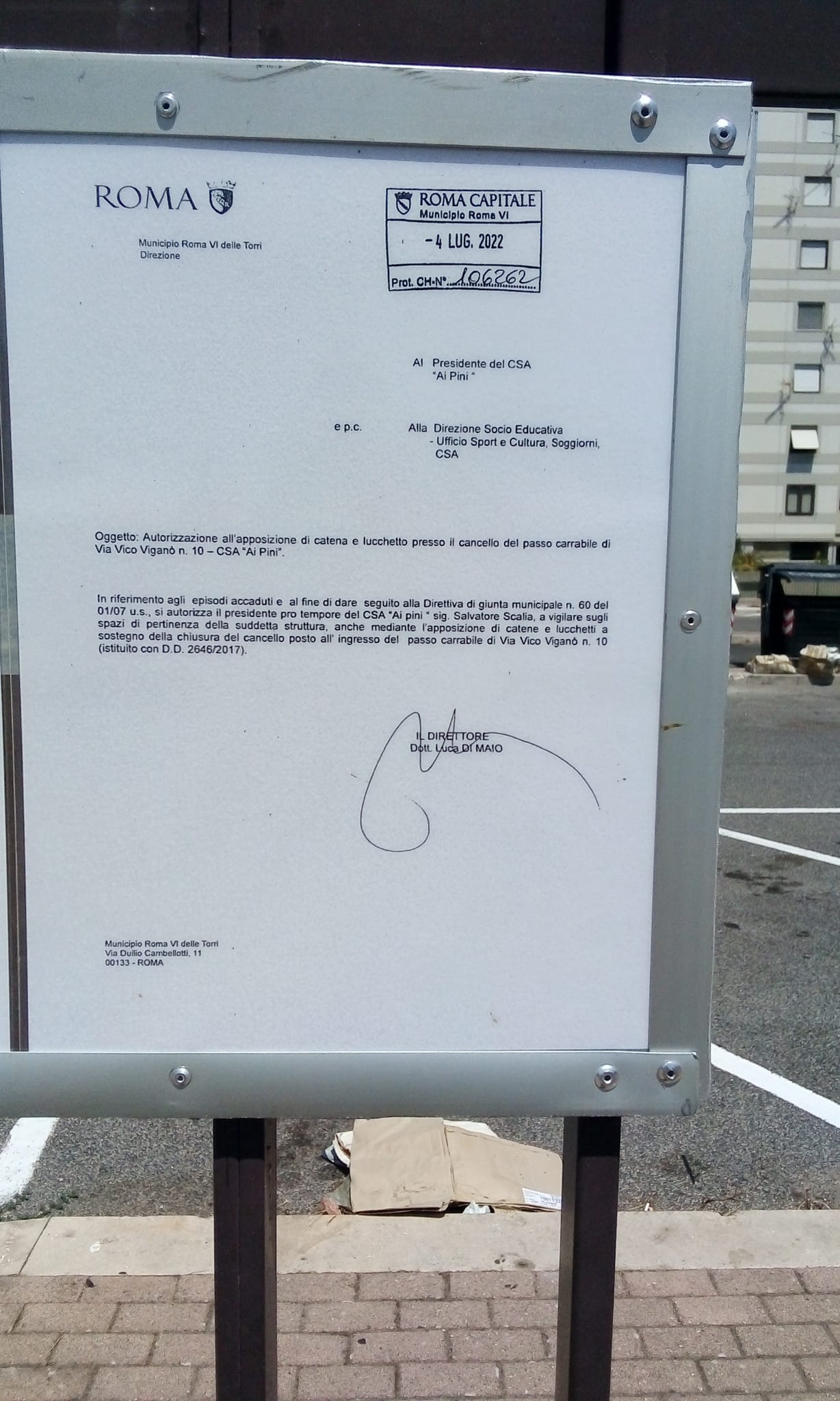 Per capirci; il Parco della Pace è delimitato a sud da via del Torraccio di Torrenova e via Parasacchi e, a nord, da viale Cambellotti e via Vico Viganò. Ed è l’accesso al parco da quest’ultima strada a essere stato chiuso ai cittadini, che risulta fondamentale per il collegamento dei due quadranti. Dice Emilio Condorelli della delegazione dei residenti che si sta battendo per la riapertura: “In questa maniera hanno creato una vera e propria barriera architettonica per chi necessita di accedere agevolmente ai servizi del quadrante nord dove ci sono il Municipio, la stazione dei Carabinieri e il centro commerciale”. Questi cittadini, capitanati da Condorelli, si occupano anche saltuariamente della pulizia dell’area verde e stanno raccogliendo le firme (per ora ne hanno una sessantina) per la riapertura del cancello: “Siamo anche preoccupati, perché chiudendo quell’accesso, oltre al disagio causato dal fatto che siamo costretti a fare un enorme giro largo per accedere al centro commerciale, si crea qui un cul de sac che potrebbe impedire una facile fuga in caso di pericolo”. E aggiungono: “Dicono che hanno messo i lucchetti per problemi di sicurezza, ma non ci crediamo perché, se così fosse, dovrebbero chiudere l’intero parco”.