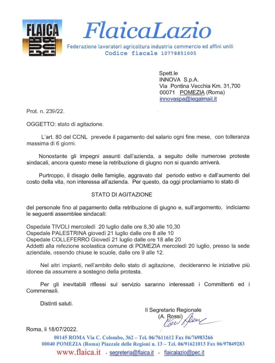 Nei giorni scorsi del tema si era interessato anche il PD di Pomezia: “Oggi è il 18 luglio, ma i lavoratori delle mense scolastiche di Pomezia che lavorano per la ditta appaltatrice invece devono ancora ricevere il bonifico della busta paga di giugno. Una situazione drammatica vista anche la fase economica critica che stiamo vivendo. Come già accade da oltre un anno la Innova Spa, vincitrice dell’appalto comunale, paga in ritardo i lavoratori. Una condizione di crisi aziendale che ha spinto le forze sindacali a promuovere uno stato di agitazione su tutto il territorio nazionale e che vedrà i lavoratori di Pomezia fermarsi mercoledì prossimo. Una situazione grave, su cui chiediamo l’intervento immediato dell’Amministrazione Comunale”.