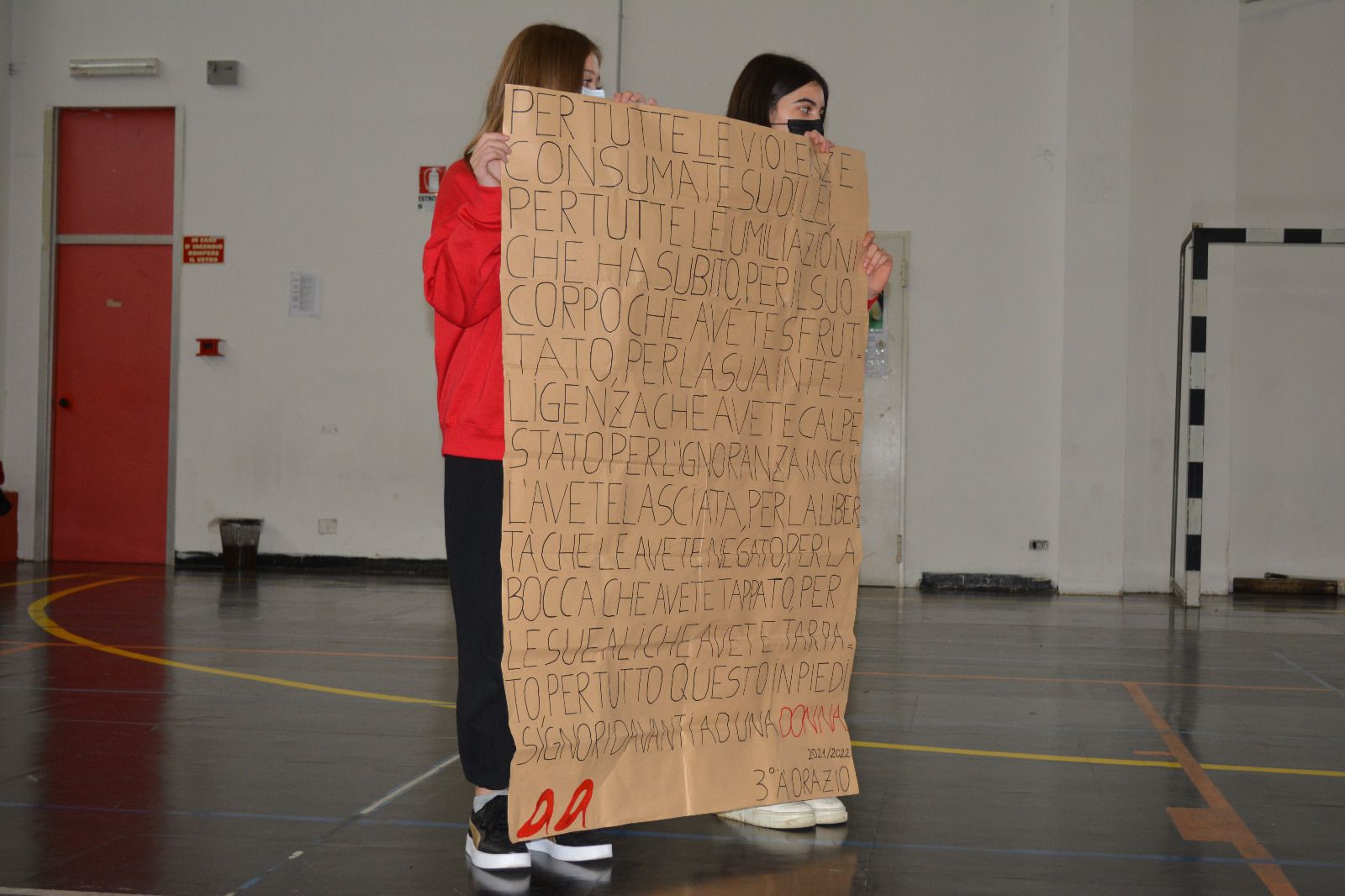 “Ascoltare le vostre parole è un’emozione grandissima – ha dichiarato l’Assessora Miriam Delvecchio – E’ la dimostrazione che investire sulle nuove generazioni è la via giusta per veicolare messaggi di uguaglianza e rispetto delle differenze, per contrastare alle radici la cultura discriminatoria che è alla base della violenza di genere. Voglio ringraziare la Preside e le docenti per lo spazio riservato a questa giornata: è un messaggio importante per l’intera Città”.