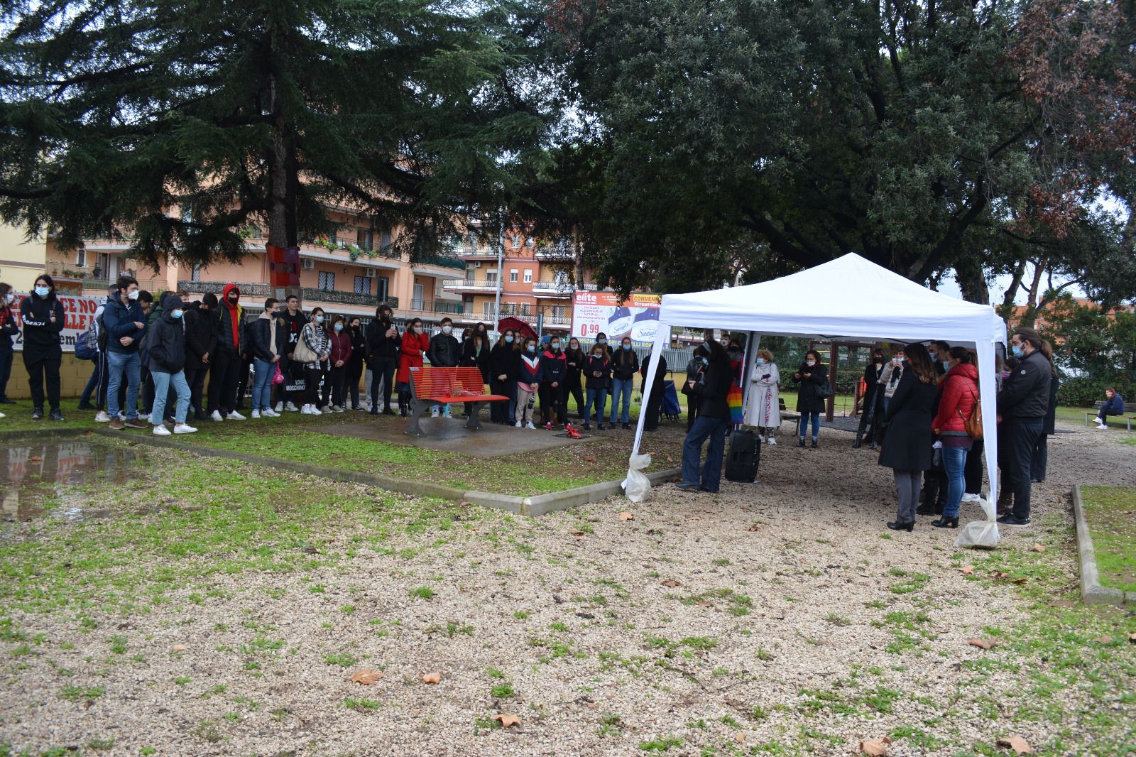 Proprio le scuole sono state ancora una volta protagoniste, in particolare la scuola media Orazio dove questa mattina è stata inaugurata una panchina rossa donata dal Club Pomezia-Lavinium dell’Associazione Inner Wheel e si è tenuto un incontro con studenti e studentesse che hanno recitato le loro poesie sul tema.