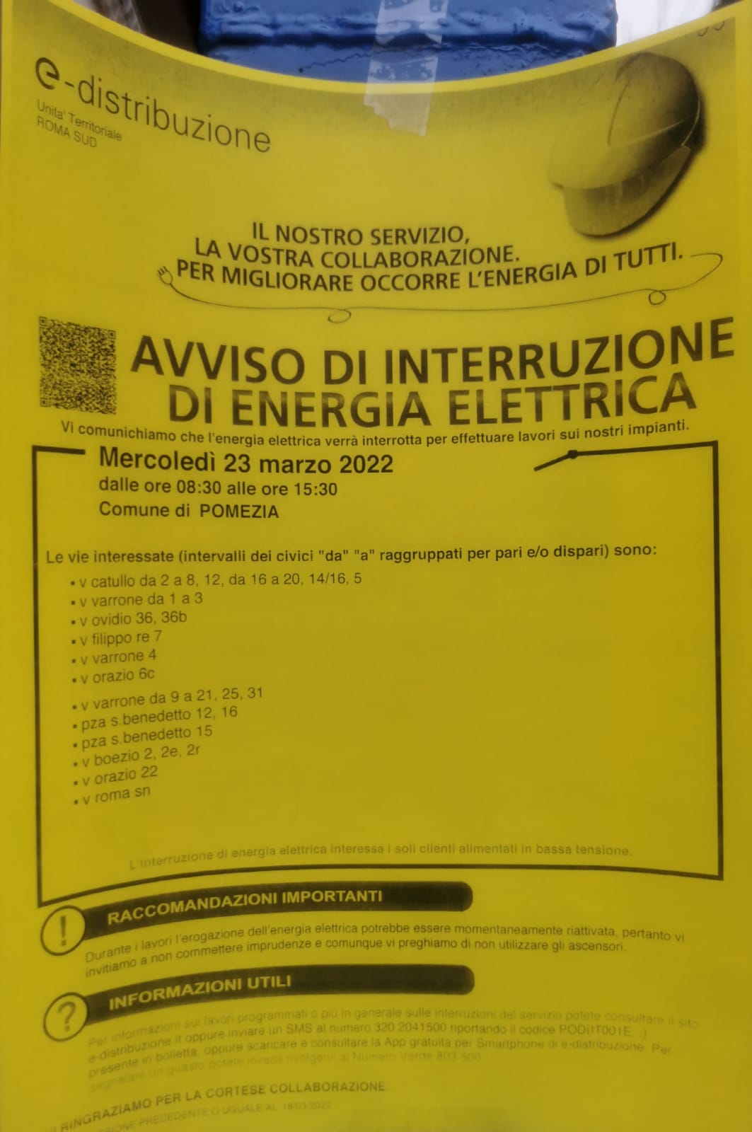 Mancherà la corrente a Pomezia: orari e vie interessate
