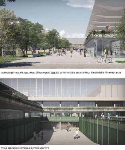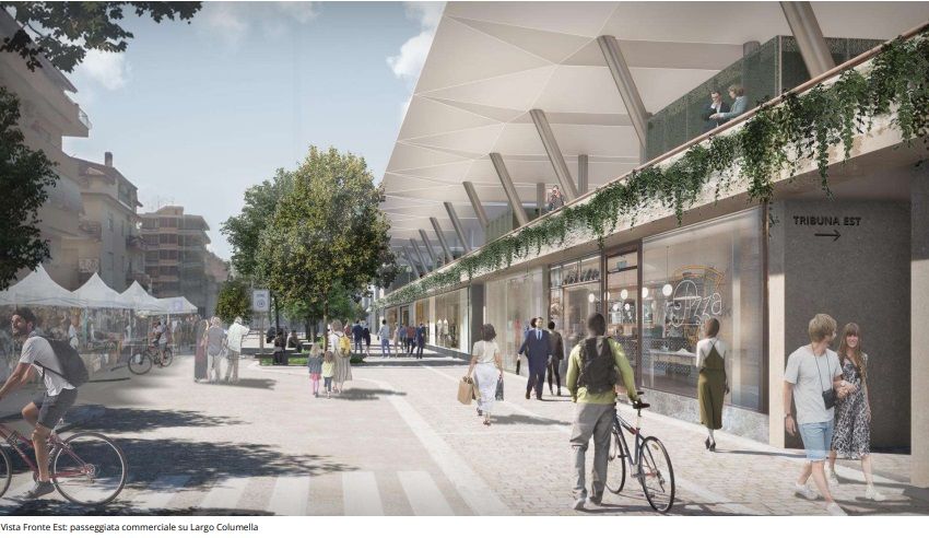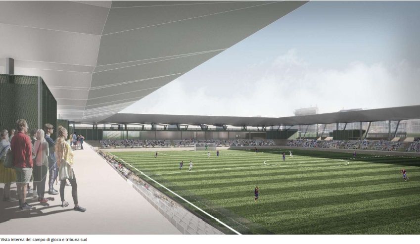 • in via Varrone uno stadio di calcio da 2800 posti idoneo per la serie C, con una superficie coperta di oltre 10mila metri quadrati, comprese le nuove tribune; un centro sportivo polifunzionale per sport outdoor (come calcio a 5, paddle…) e 2.000 metri quadrati per sport indoor (come pallavolo, basket, piscina, palestra…) oltre a terrazze e club house;