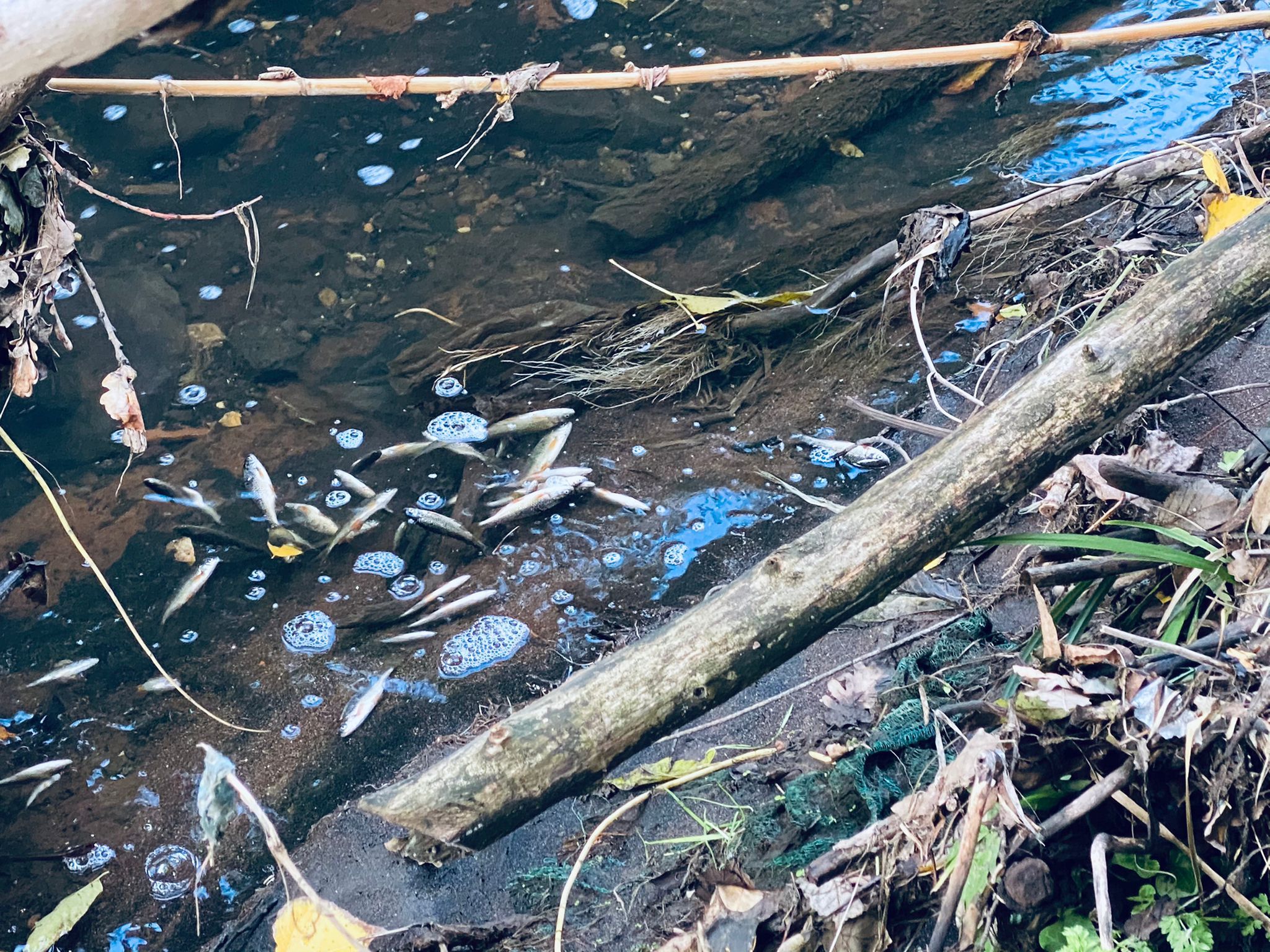 Un forte odore di detersivo – che per certi versi poteva anche sembrare piacevole – si percepiva nell’aria. Ma questo, che per l’appunto era un buonissimo odore, non era certo la cosa preoccupante, ma solo indicativa: il fosso, infatti, era pieno di schiuma e all’interno diverse decine di pesci erano già morte o stavano per morire. Non è di certo la prima volta che in questo fosso avvengono sversamenti: a volte le acque si tingono di blu acceso, di verde o di azzurro a seconda dei reflui che vengono versati da aziende poco corrette che preferiscono versare i loro scarti in queso modo anziché smaltirli secondo normativa, inquinando così sia l’acqua del fosso che i terreni circostanti.