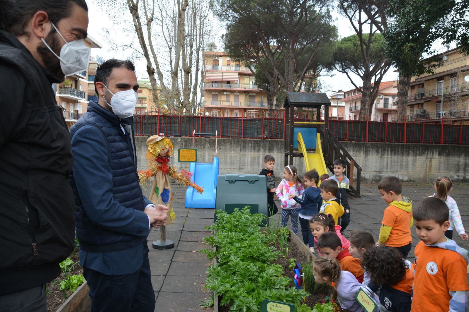 Il Sindaco di Pomezia Adriano Zuccalà ha visitato gli orti didattici delle scuole dell’infanzia comunali, insieme agli Assessori Miriam Delvecchio e Giovanni Mattias. Il progetto, avviato in tutti e quattro i plessi, rientra in un percorso più ampio di educazione alimentare per gli studenti.