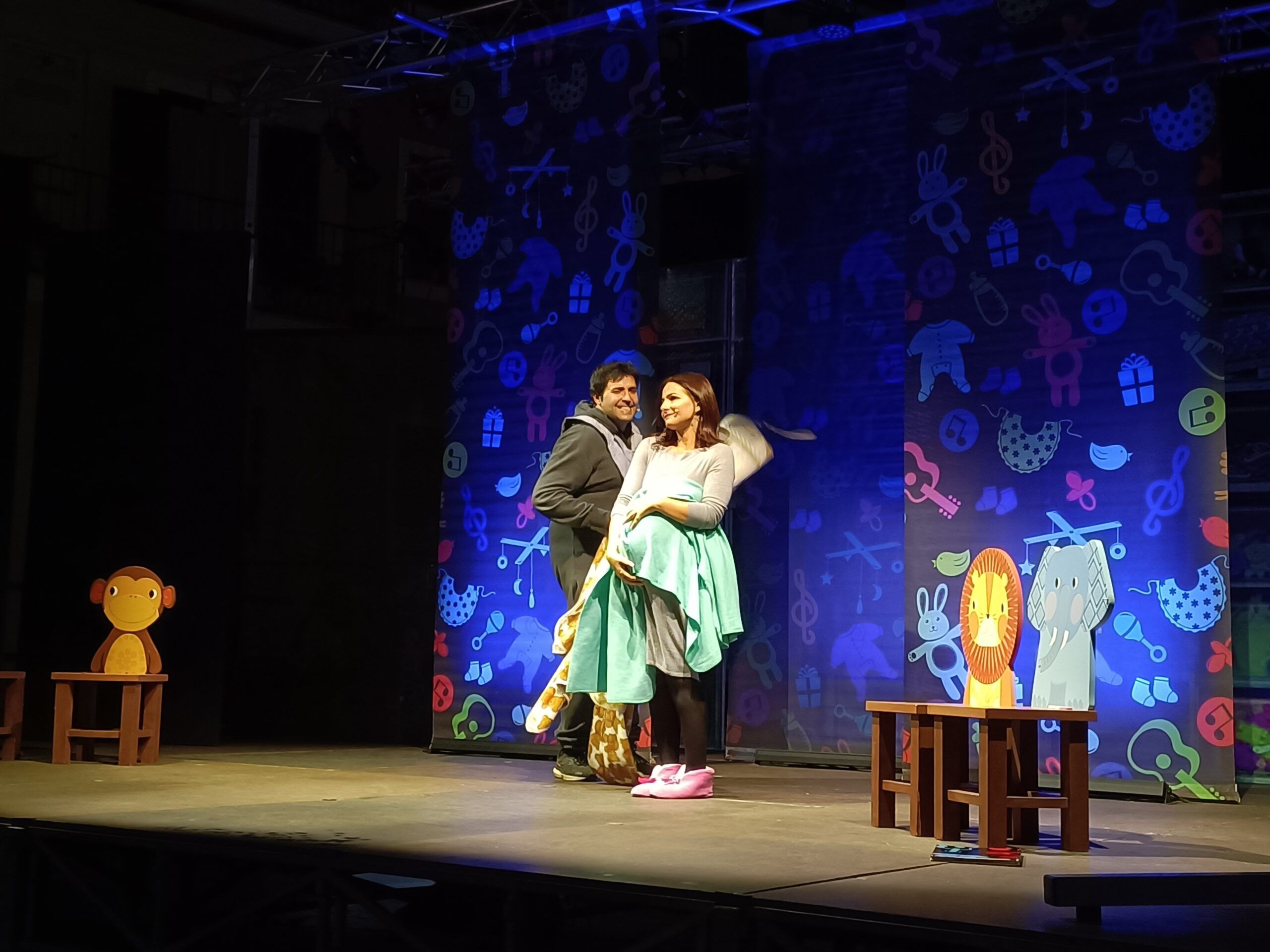 Ed ecco quindi alternarsi in questi nove mesi (di gravidanza) a suon di musica e parole, diversi personaggi: i genitori di lei, la suocera, l’amico gay, la migliore amica, i ginecologi, l’impiegato addetto all’assegno di maternità e tanti altri improbabili quanto amorevoli dispensatori di consigli in una materia nella quale è impossibile definirsi preparati perché si dice che “quando nasce un bambino nasce anche una mamma!” e anche il papà fa i conti con il fatto che dovrà soddisfare le voglie impensabili di quella donna che ha ormai messo da parte tutto per lasciar spazio a tante paure ed ansie.