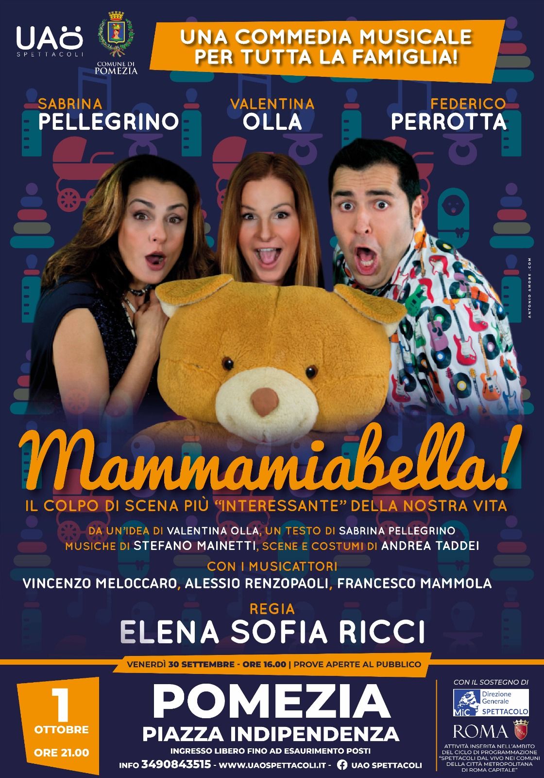 Genitori non si nasce, si diventa. Tra mille perizie, imprevisti e affanni. Come quelli messi inscena nell’emozionante spettacolo “Mammamiabella” la straordinaria commedia musicale adatta a tutta la famiglia prodotta dalla Uao Spettacoli andrà in scena – gratis – a Pomezia, in piazza Indipendenza. Si parlerà di emozioni, di una nuova vita che arriva, delle rinunce che i neogenitori fanno in vista della nascita di un figlio. E si riderà.