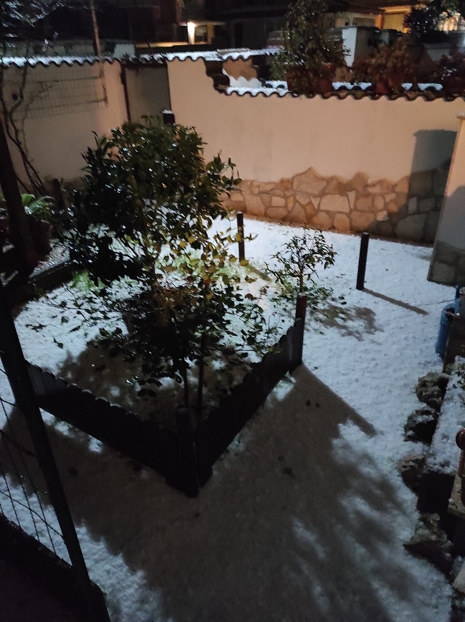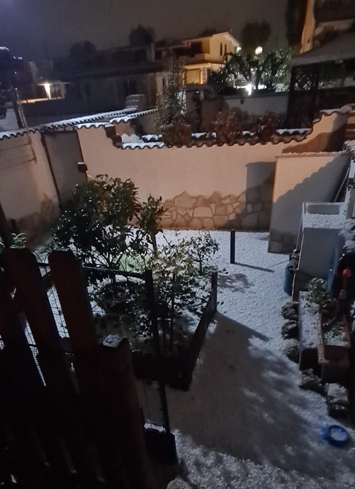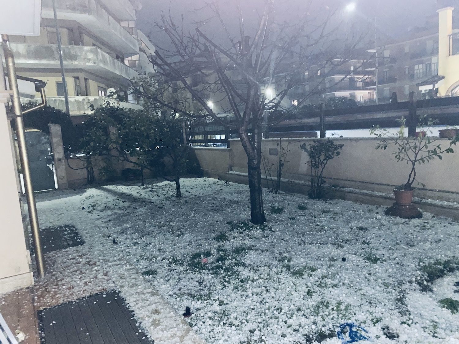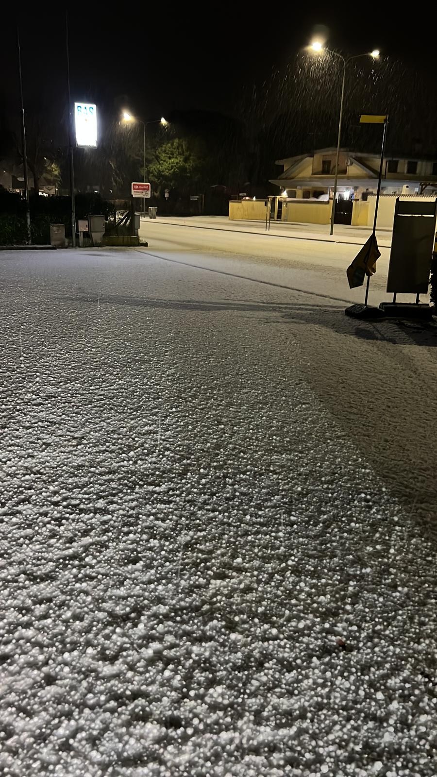 Auto e tetti imbiancati, dunque. La grandine era di dimensioni notevoli, come dimostrano le foto. Già oggi nel pomeriggio la neve aveva fatto la sua prima comparsa a Pomezia. Non molta, ma abbastanza da imbiancare le strade.