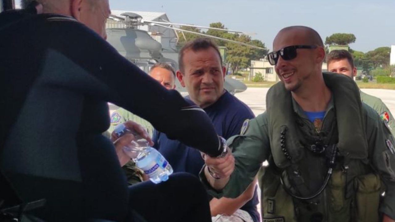 Fortunatamente per lui proprio su quel tratto di mare era in corso un’esercitazione aerea dell’Aeronautica Militare: l’equipaggio in addestramento allora, accortosi del pericolo che stava correndo l’uomo, è immediatamente intervenuto per soccorrerlo. E così l’esercitazione è passata da uno scenario simulato ad uno reale, portando i Militari subito a mettere in pratica ciò che stavano imparando.