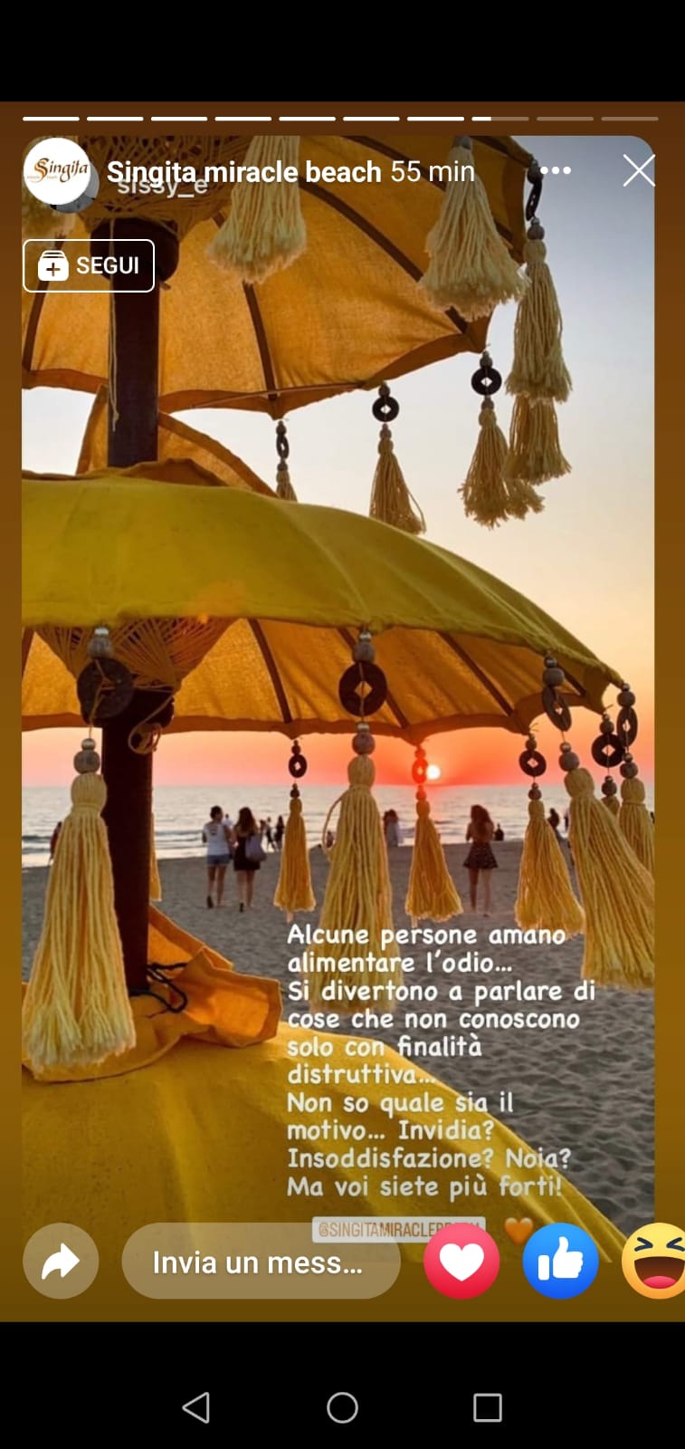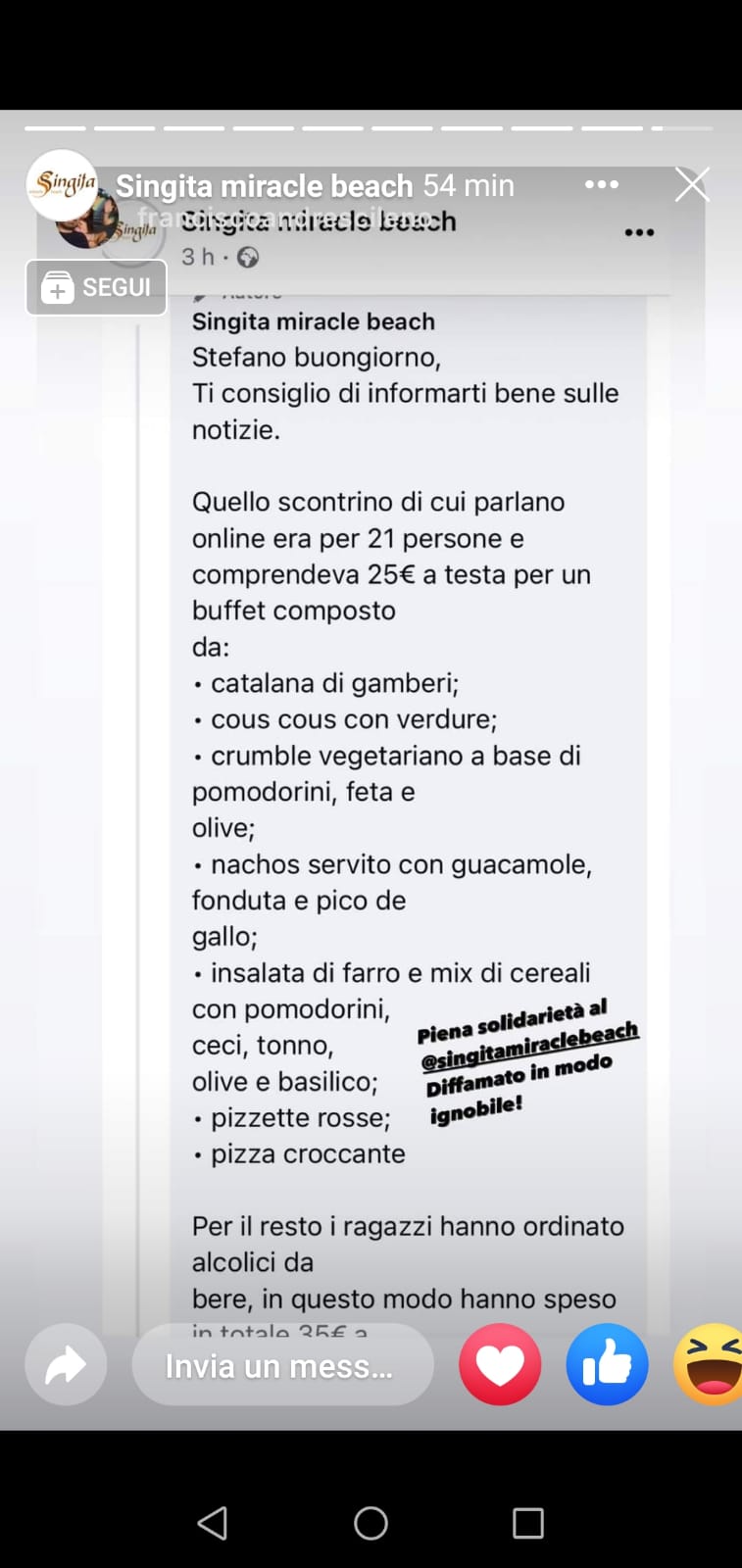 Singita Miracle Beach e tutti i dipendenti che prestano servizio sulla spiaggia, diffidano chiunque dal propagandare notizie false, lesive dell’immagine dell’attività sia sui media che sui social. Singità Miracle Beach ha dato altresì mandato ai propri legali di procedere penalmente e civilmente a tutela della propria immagine. Grazie a tutti coloro (e sono tantissimi) che ci conoscono e ci vogliono bene”.
