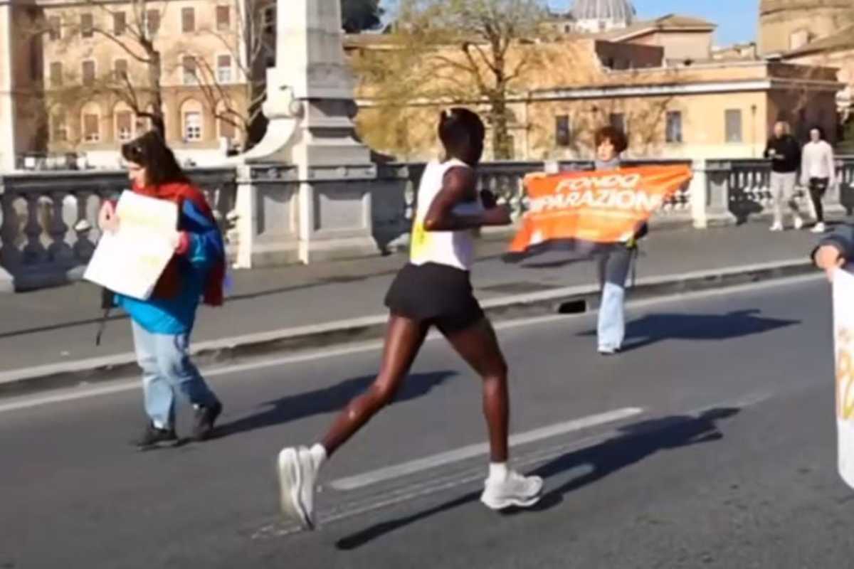 L’iniziativa delle manifestanti, ribadiamo, non ha comunque provocato interferenze sostanziali con la gara in corso (poi vinta da Asbel Rutto). Il tutto è successo intorno alle 9.30, poco dopo la partenza della maratona: almeno in tre si sono sdraiati al centro di Ponte Vittorio, esponendo degli striscioni sopra citati. Gli agenti del I Gruppo Prati sono riusciti però a farle alzare prima che potessero intralciare la corsa. Al momento le tre attiviste si trovano presso il Commissariato Aurelio della Polizia di Stato, che sta svolgendo gli accertamenti del caso.