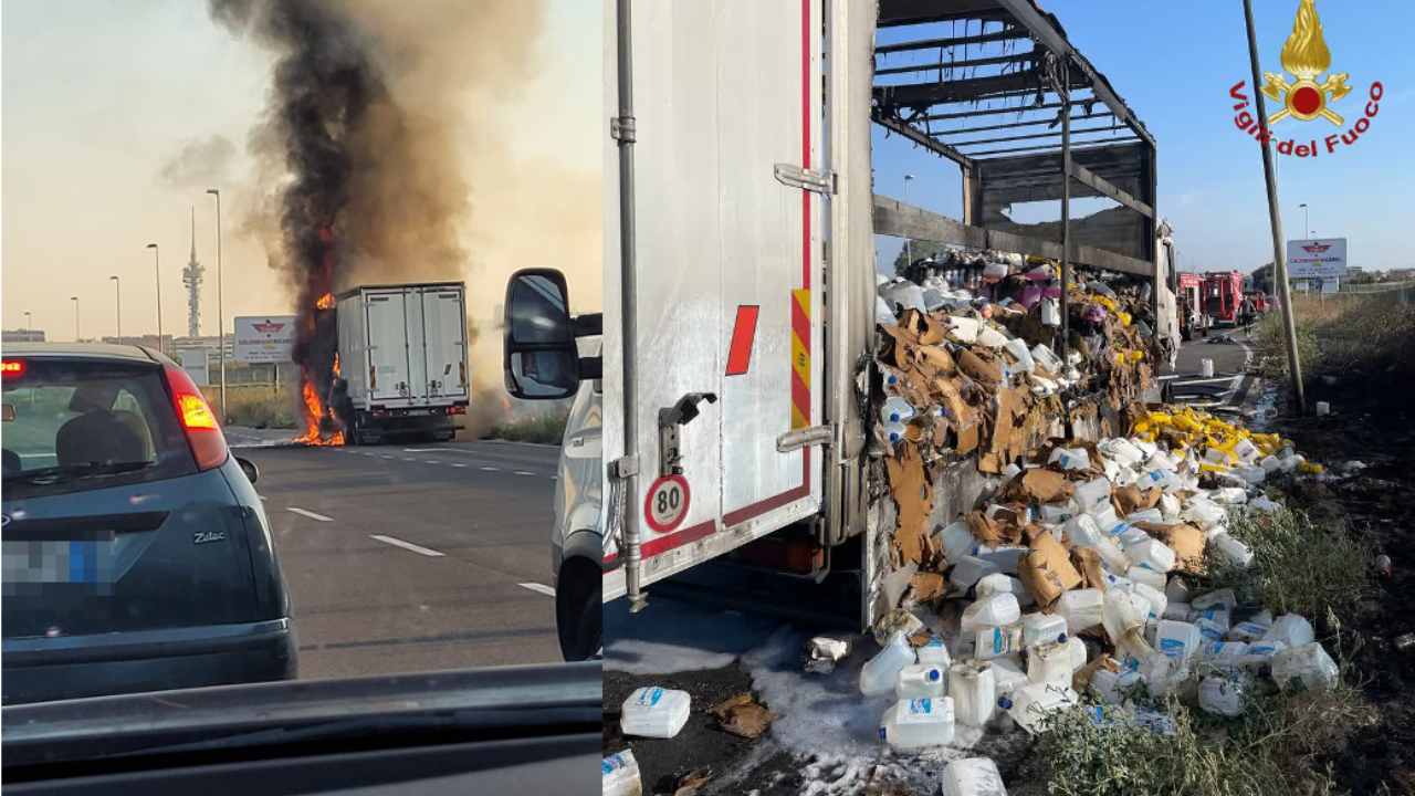 Ad andare a fuoco è stato un camion che trasportava detergenti liquidi e prodotti per le pulizie. Sul posto, dopo le segnalazioni al 112, sono intervenuti i Vigili del Fuoco del distaccamento dell’EUR con l’autobotte Tuscolano II ed il supporto del Nucleo NBCR. Nella circostanza, fortunatamente, nessuno è rimasto ferito. In fase di accertamento le cause che hanno innescato l’incendio.