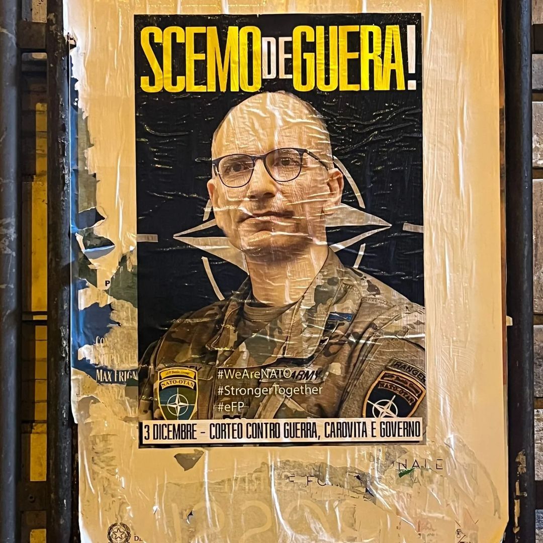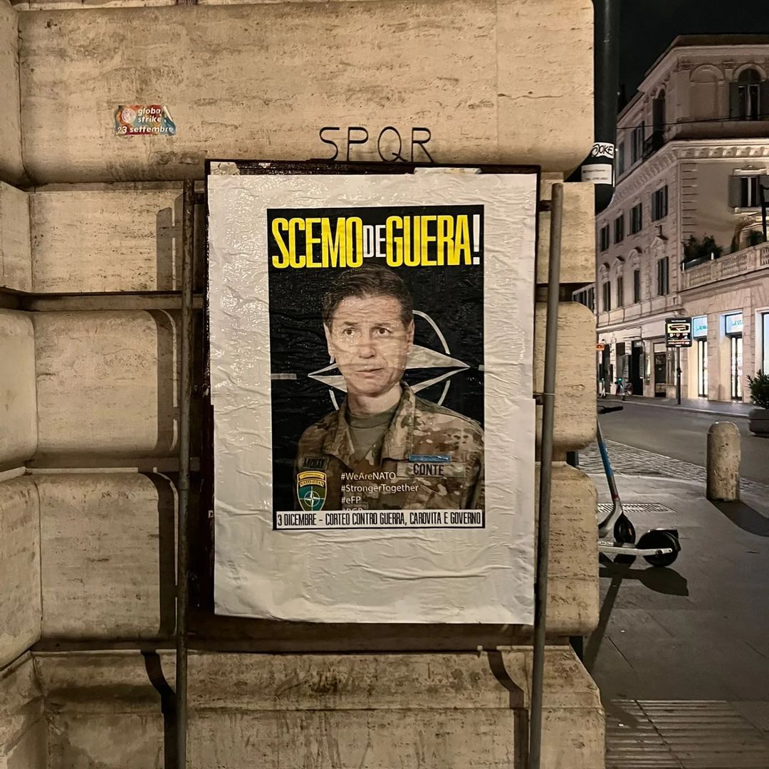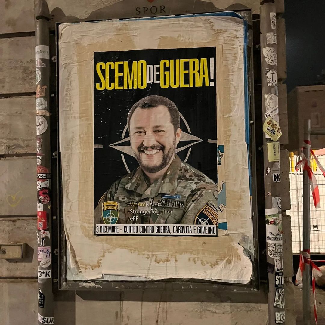 Ma non solo. Ogni leader, all’interno del manifesto, indossa una divisa mimetica, con lo stemma della Nato e accanto l’hashtag “#WeAreNato #StrongerTogether #eFP”. Le affissioni in giro per la Capitale d’Italia, sono solo un antipasto alla grande manifestazione pacifista del 3 dicembre 2022, dove si metterà in scena un corteo per la pace in Ucraina. I militanti del collettivo antagonista, avrebbero effettuato l’affissione questa notta, ovvero tra il 28 e 29 dicembre.