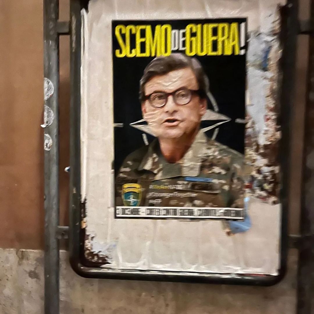 Il collettivo Militant ha preso d’assalto le strade adiacenti a ministeri o luoghi dove si sviluppa la politica italiana. Tra le strade interessate, corso Rinascimento, corso Vittorio Emanuele e le stradine nei pressi di piazza Colonna. All’interno dei manifesti, si vedrebbe la faccia dei leader politici, dove sorge il titolo “Scemo\Scema de guerra”, a far capire la netta contrarietà a tutte quelle linee politiche che contribuiscono a intensificare le ostilità tra lo stato russo e quello ucraino.