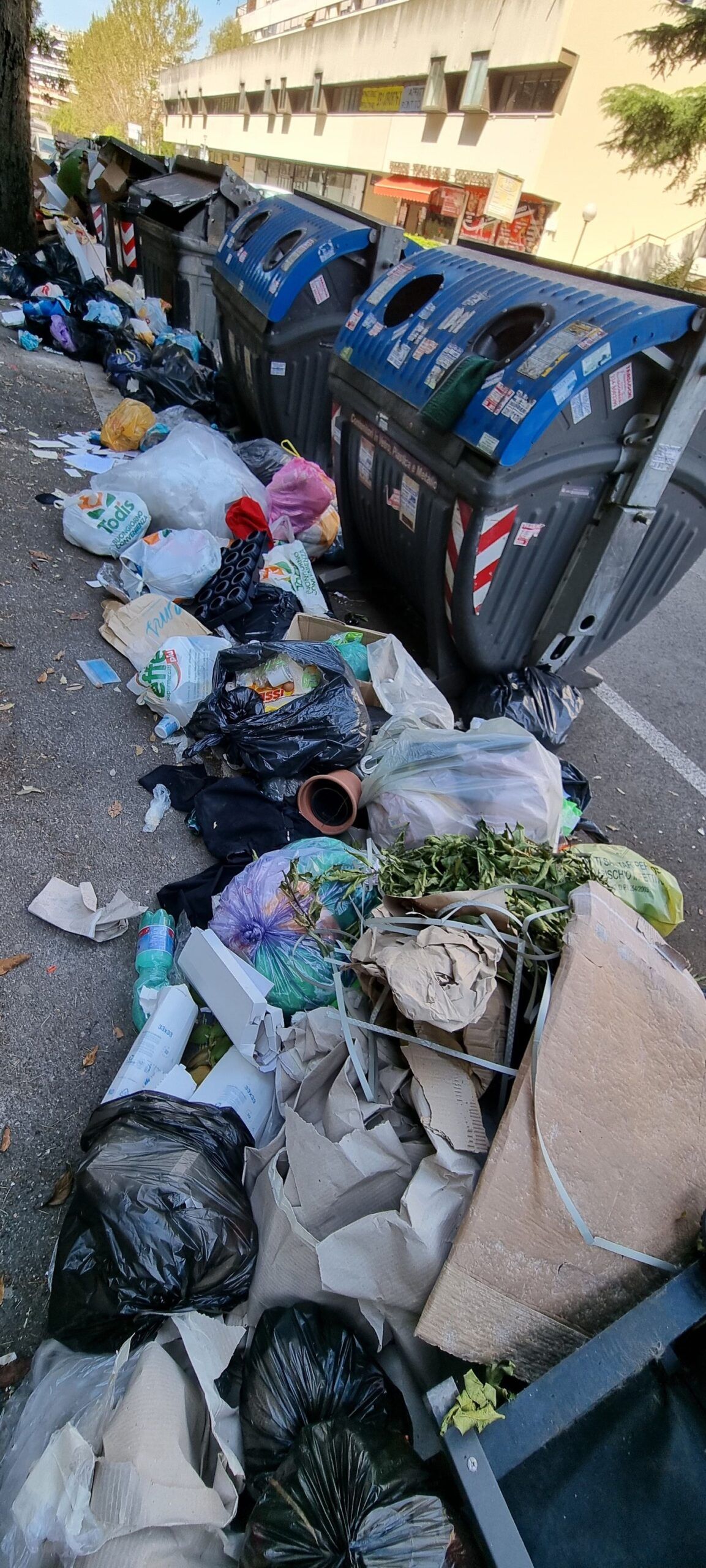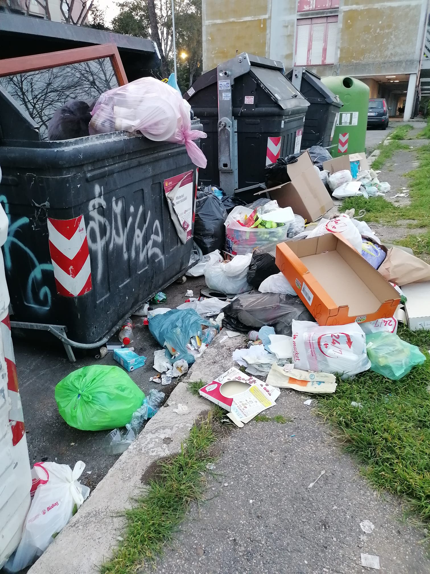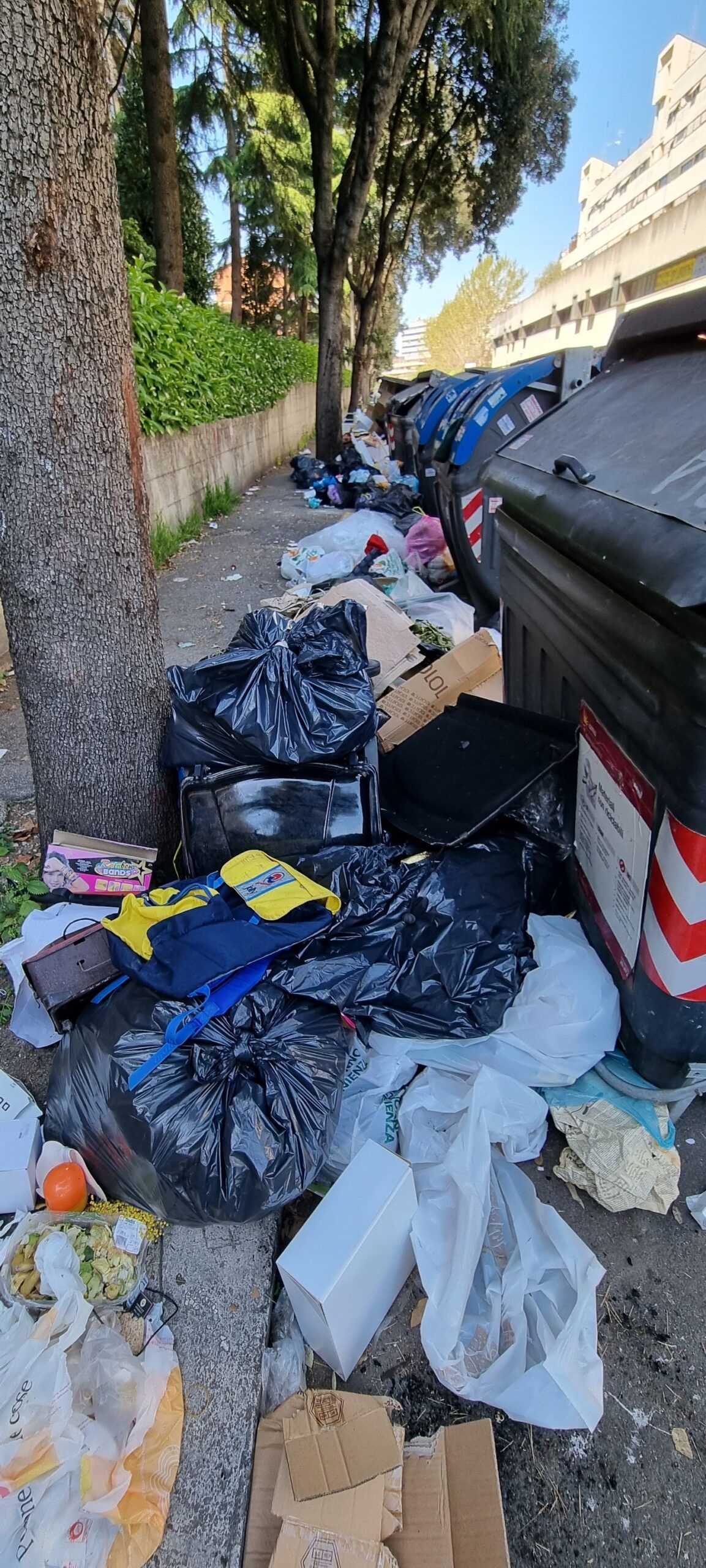 I cittadini sono disperati. Le foto che arrivano da Spinaceto mostrano una situazione al limite. I marciapiedi sono impraticabili, completamente invasi da spazzatura di ogni tipo. I secchioni non ce la fanno a contenere quanto prodotto dagli abitanti del quartiere e non ritirato dagli addetti Ama. Gli aautocompattatori e i TMB, come rivela una chat interna dei lavoratori Ama, sono pieni, e questo fa temere il peggio per i prossimi giorni.