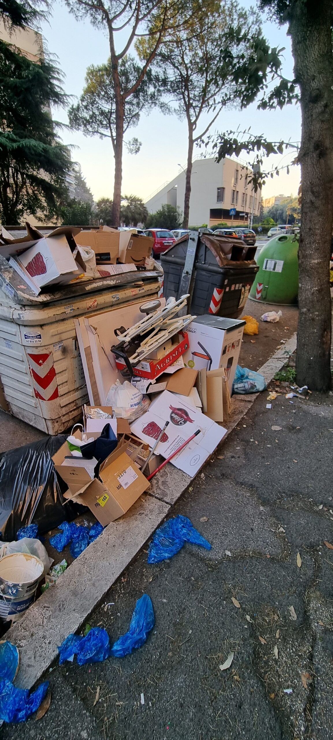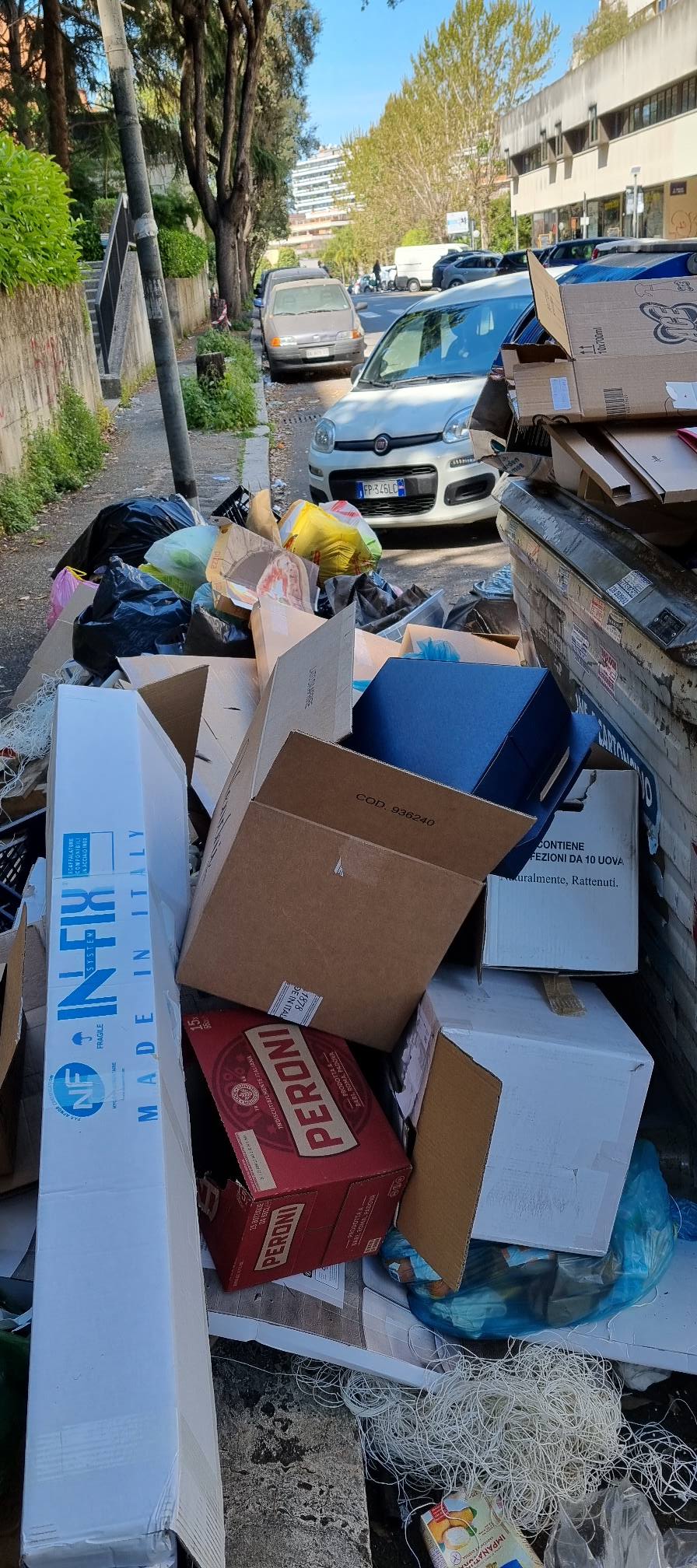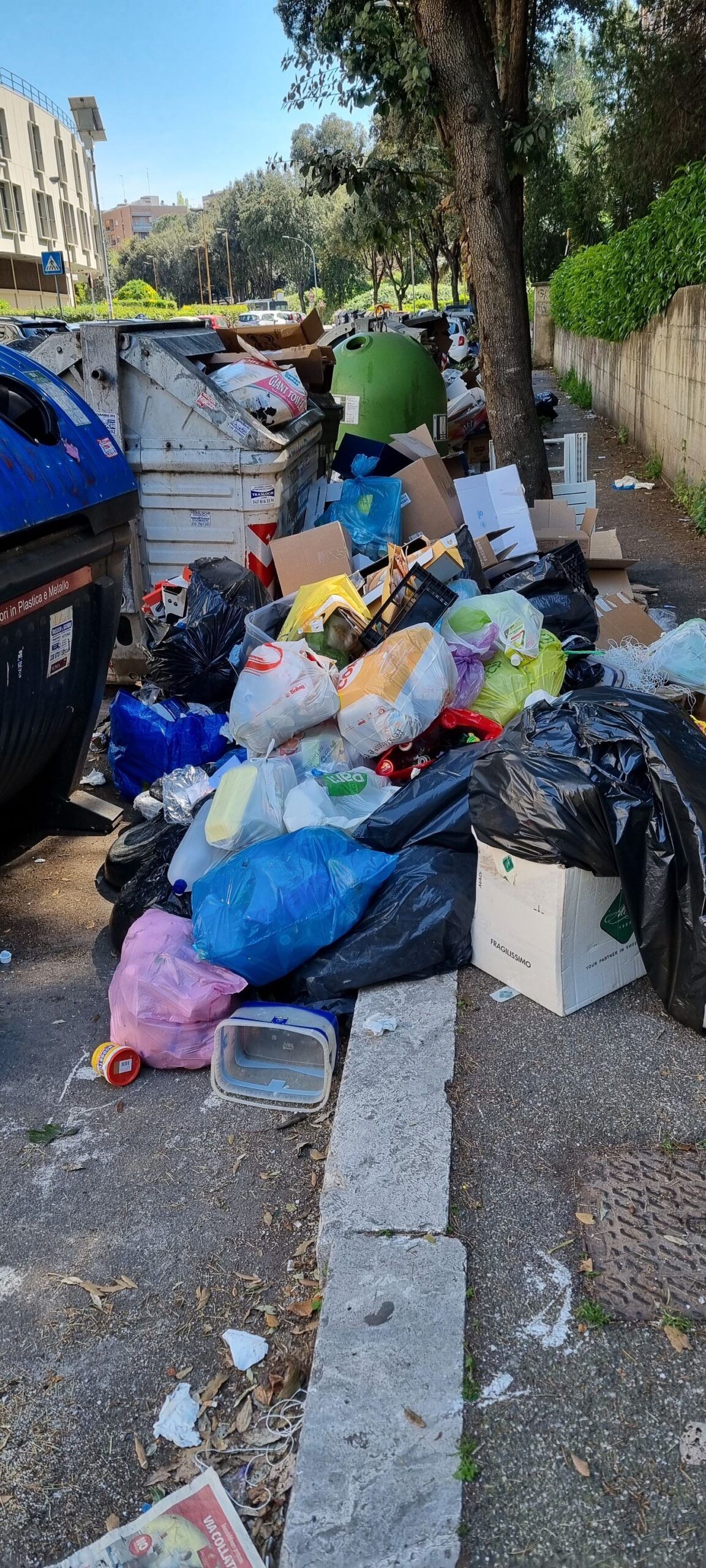 I cittadini sono disperati. Le foto che arrivano da Spinaceto mostrano una situazione al limite. I marciapiedi sono impraticabili, completamente invasi da spazzatura di ogni tipo. I secchioni non ce la fanno a contenere quanto prodotto dagli abitanti del quartiere e non ritirato dagli addetti Ama. Gli aautocompattatori e i TMB, come rivela una chat interna dei lavoratori Ama, sono pieni, e questo fa temere il peggio per i prossimi giorni.