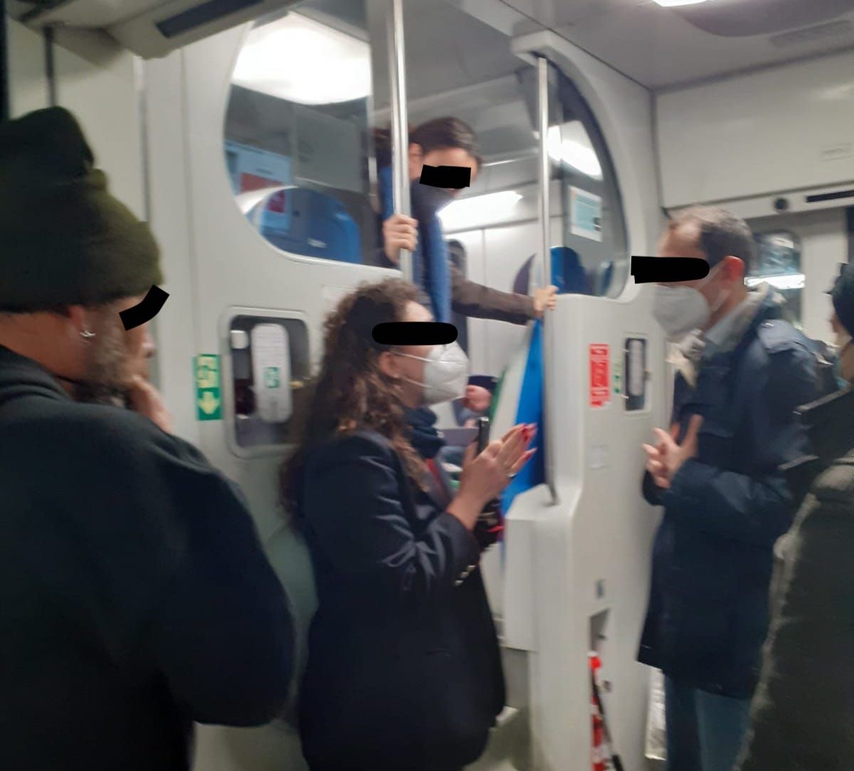 Perché è stata fatta scendere, se ormai le acque si erano calmate, la donna aveva indossato la mascherina ed era in possesso di biglietto? A che pro “vendicarsi”, visto che comunque la signora era venuta subito a miti consigli, quando ogni giorno si vedono persone che, prepotentemente, viaggiano con la mascherina abbassata, se non addirittura senza, come dimostrano anche le foto da noi scattate, che riprendono un uomo con la mascherina completamente abbassata a bordo dello stesso treno, proprio mentre si discute della faccenda? Perché la stessa sceneggiata non è stata fatta per quel passeggero? La signora aveva sicuramente sbagliato, ma si era ricomposta capendo l’errore. E chi era la donna che, facendo valere la sua posizione di “superiorità” è riuscita a far ripartire subito il treno lasciando la donna a terra? Tutte domande che i passeggeri, sconcertati, si sono fatti e si stanno ancora facendo.