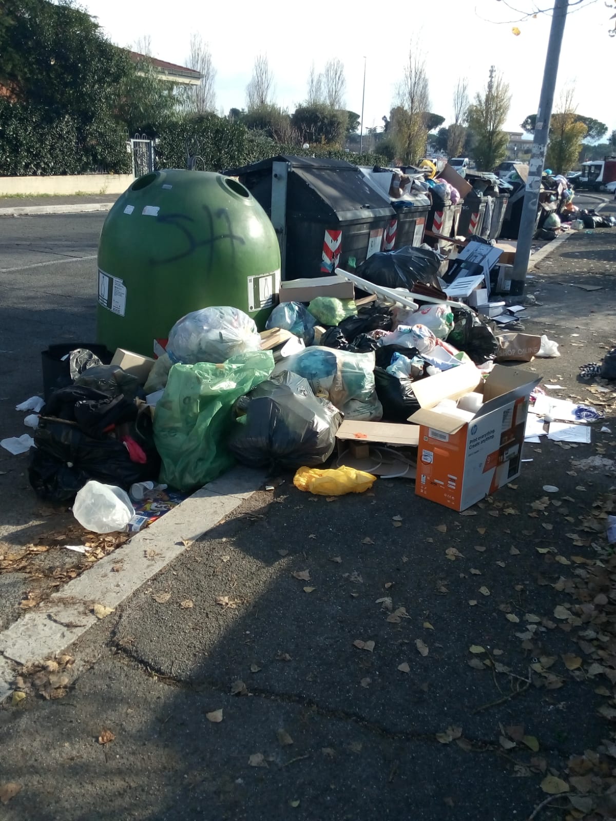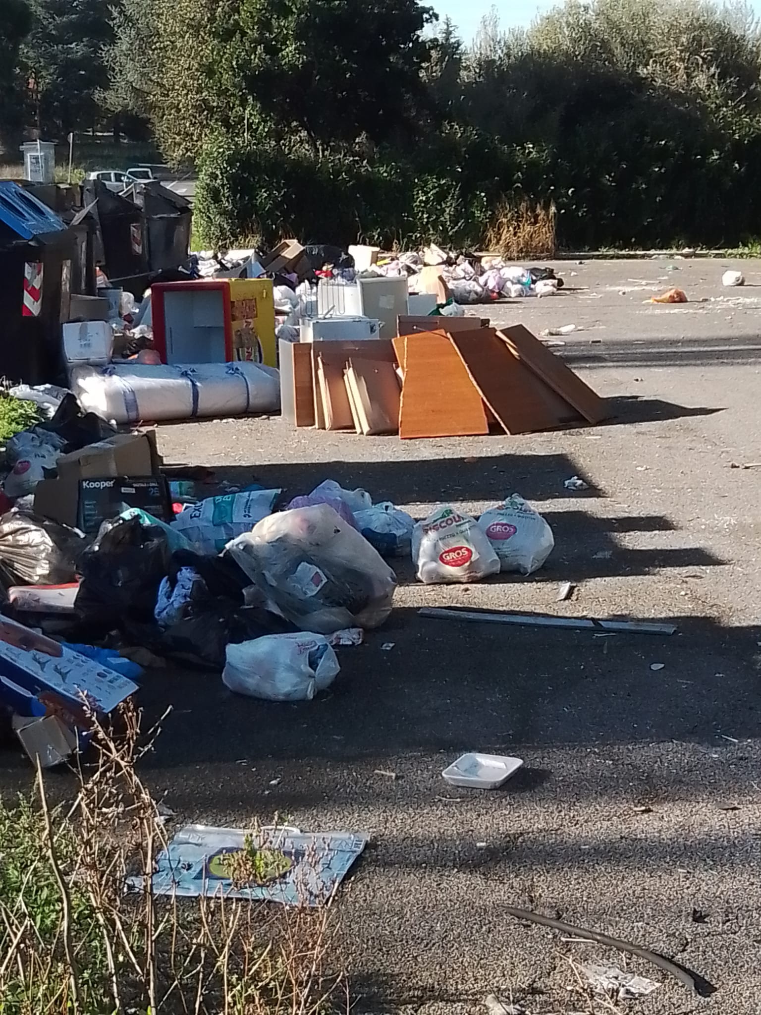 In ultimo, Doria ha ripreso una situazione di emergenza rifiuti nel quartiere, questa volta a via Don Primo Mazzolari, proprio nei pressi del deposito AMA locale. Qui, ai piedi dei cassonetti, stazionano montagne di rifiuti. In una situazione probabilmente appesantita dalle recenti feste natalizie, riusciamo a trovare di tutto: sacchi dell’immondizia, scatoloni, borse, sedie, resti di stendini, pezzi di mobile e altre cianfrusaglie lasciate abbandonate in quel punto.