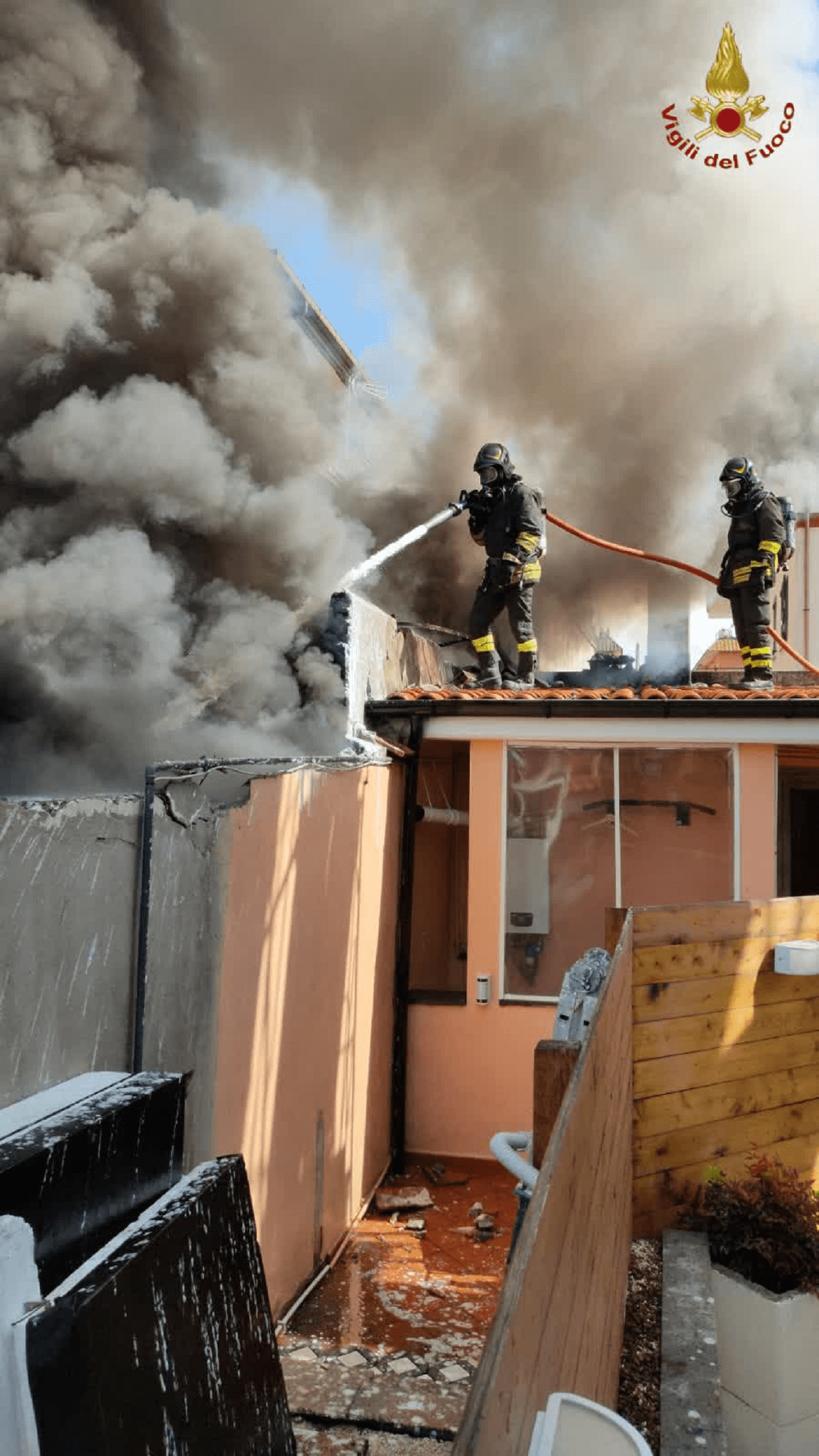 La densa colonna di fumo e le vicine abitazioni