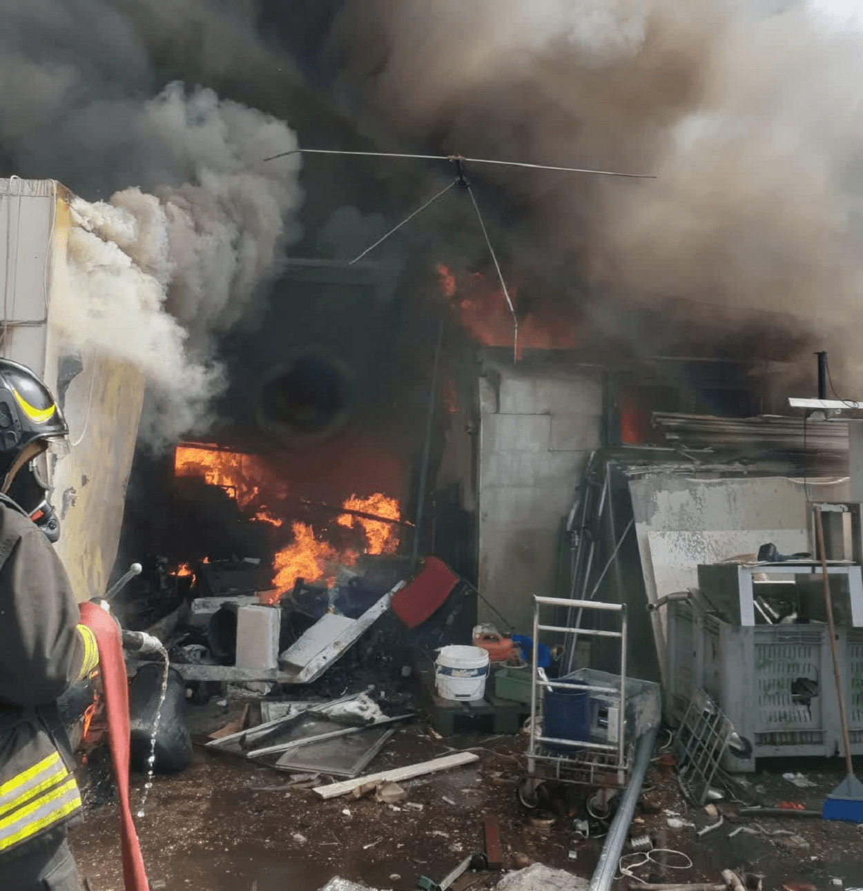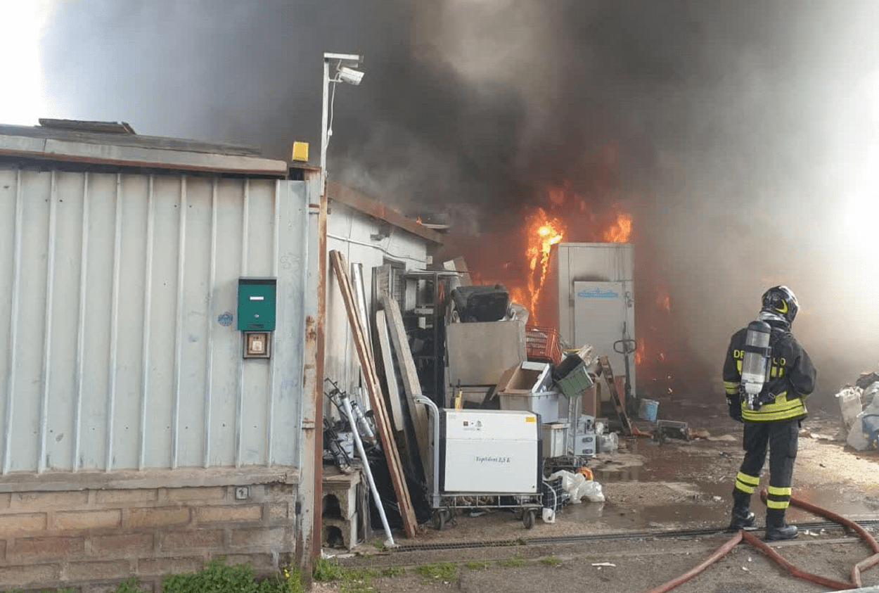 L’incendio nel capannone e l’intervento dei vigili del fuoco