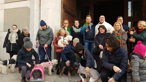 Anche Enzo Salvi alla benedizione degli animali, in una chiesa al Tuscolano, per Sant’Antonio Abate, prima del debutto del suo spettacolo dedicato agli amici a 4 zampe, e non solo, “I love pets” al Teatro Tirso.