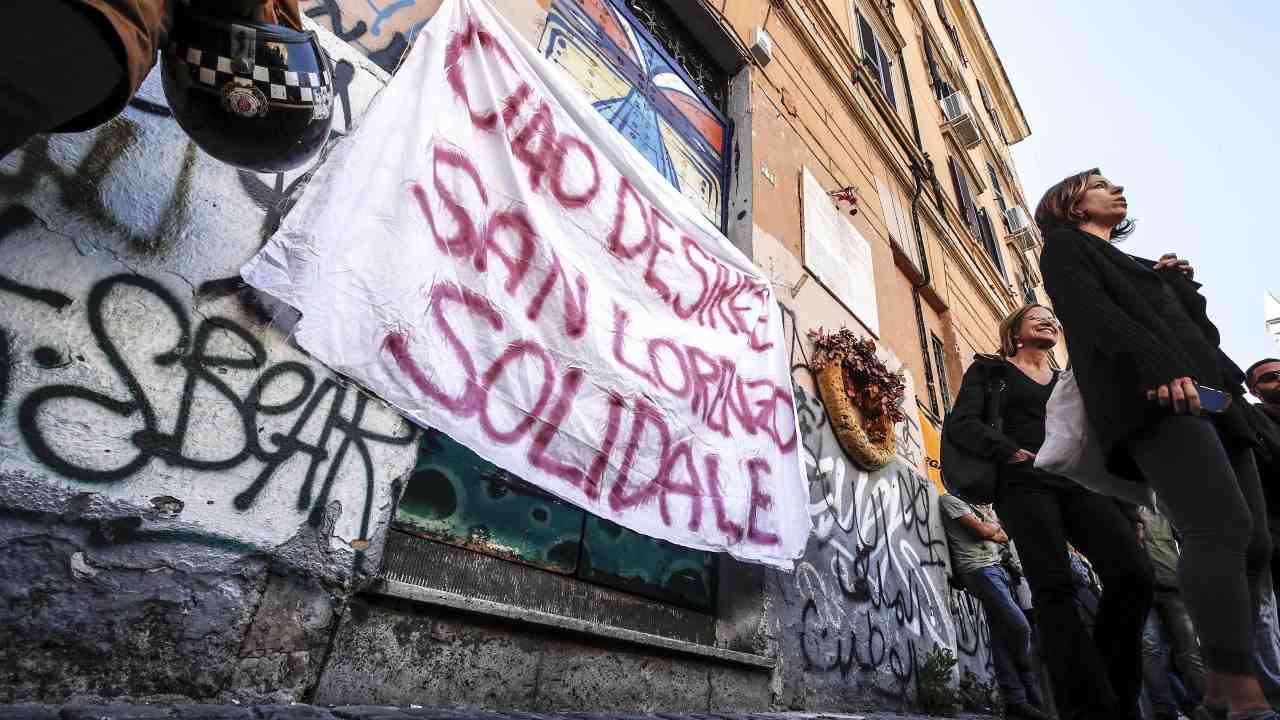 Striscione a San Lorenzo per Desiree Mariottini la giovane di 16 anni uccisa nel 2018 – ANSA/ilcorrieredellacitta.com