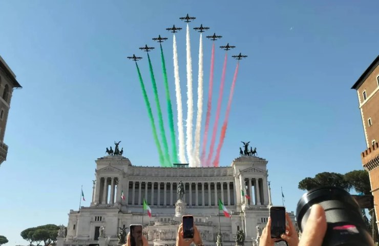 Per quanto riguarda invece il secondo sorvolo, gli aerei passeranno una seconda volta intorno alle 12.00, quando ciao è prevista la fine della parata militare. La PAN (Pattuglia Acrobatica Nazionale), fondata nel 1961, è composta da 10 aerei Aermacchi MB-339 da addestramento (8 volanti e 2 riserve) modificati appositamente per le esibizioni acrobatiche. I piloti protagonisti sono tutti istruttori di volo con alte qualifiche dell’Aeronautica Militare selezionati a seconda dell’esperienza, abilità e competenza.
