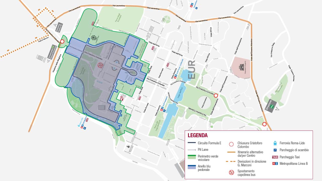 Nei giorni precedenti e successivi alla gara, il quartiere sarà infatti interessato da un programma di lavorazioni per il montaggio e smontaggio del circuito, che comporteranno alcune modifiche dei percorsi delle linee bus, della circolazione e della sosta. Nei giorni di chiusura del circuito e di svolgimento della gara il tratto EUR di v. C. Colombo sarà chiuso al traffico. A renderlo noto è il portale Roma Mobilita (Cicca qui per leggere tutti i dettagli sulla viabilità del weekend).