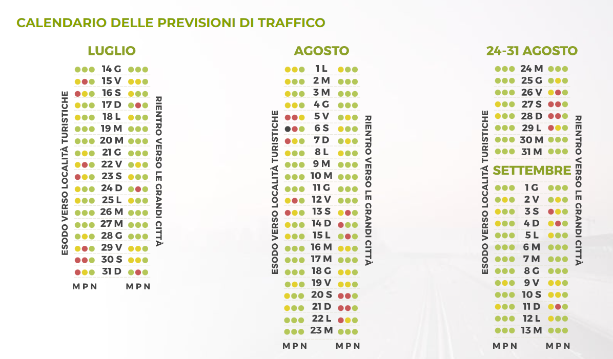 Calendario previsioni traffico agosto 2022