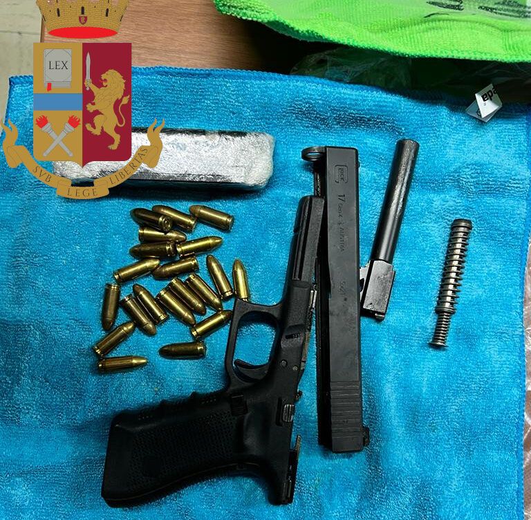 Nella stessa stanza gli agenti hanno trovato 3 pistole avvolte con panno in fibra di colore rosa celeste e verde, 2 Revolver Smith & Wesson con 17 proiettili, 1 Pistola Glock calibro 9x 21 con 20 munizioni dello stesso calibro. Insieme alla droga e alle armi i poliziotti hanno sequestrato anche 3 bilance di precisione, 1 macchina per il sottovuoto, 1 agenda di colore verde riportante il quantitativo di stupefacente, cifre e nomi, 7.900 euro trovati in un comodino, 2 telefoni cellulari e 46 gr di hashish trovati nel garage nella disponibilità dell’uomo.