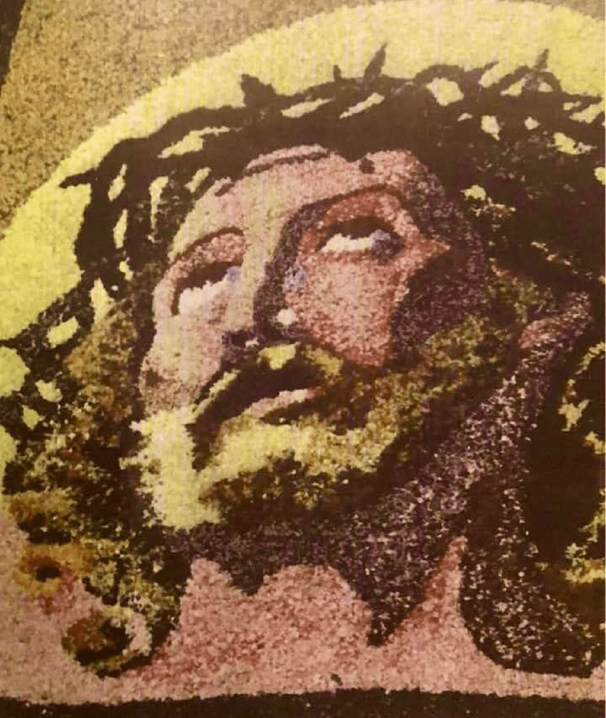 Per questo e da allora, la comunità geranese, volle rendere omaggio a Maria con il simbolo più concreto della natura, l’elemento necessario ed indispensabile per l’uomo nella sua esistenza, l’emblema di molti significati diversi e allo stesso tempo segno di bellezza e dell’estetica più straordinaria: il fiore! Sapientemente composto sull’infiorata. Uniche le sue caratteristiche: da un lato la continuità storica e, dall’altro, l’uso esclusivo di fiori e foglie in un periodo dell’anno povero di fioriture e senza far ricorso a terre colorate o altri espedienti.