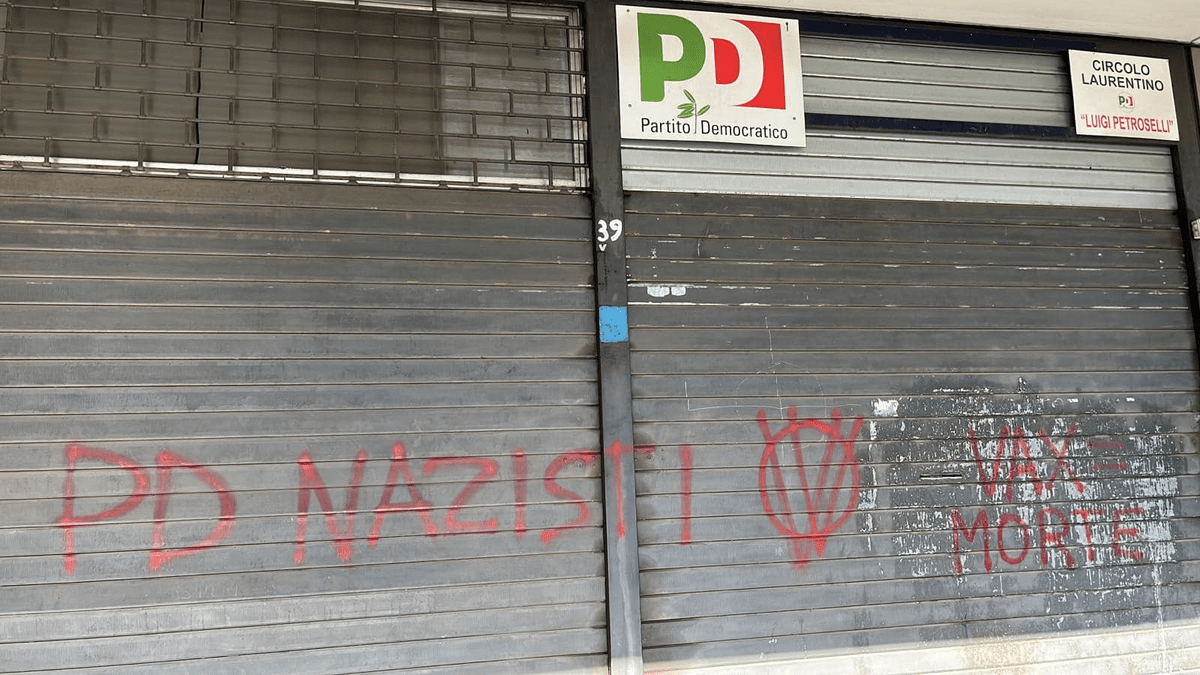 Insulti al Pd e alla Cgil e scritte antisemite nel IX municipio, firmate: ‘No vax’ (FOTO)