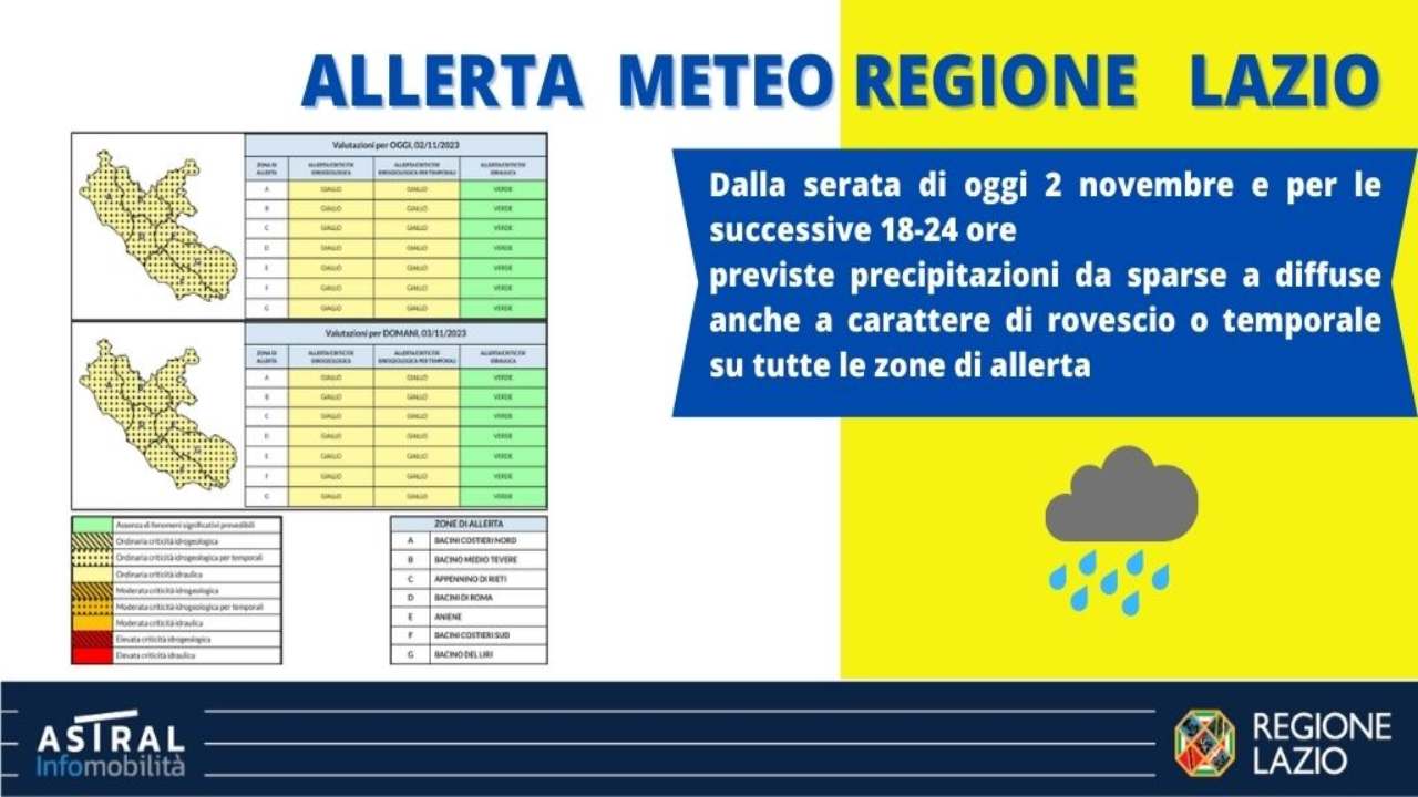Allerta meteo nel Lazio da ieri sera, 2 novembre 2023, e per tutta la giornata di oggi: previste precipitazioni e raffiche di vento di forte di intensità nelle prossime ore. Intanto, nella notte, sono stati diversi i danni segnalati causati dal maltempo. Ecco tutti gli aggiornamenti. (foto: Meteo Lazio)