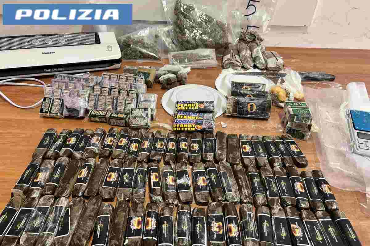 L’intervento più importante è stato portato a termine dagli uomini del Commissariato Appio Nuovo che hanno arrestato in flagranza un 24 enne romano. Nello specifico, durante un mirato servizio di osservazione, effettuato a seguito di un’attività info-investigativa, i poliziotti hanno controllato l’abitazione del ragazzo in zona Prenestina e, grazie all’ausilio dell’unità cinofila antidroga, hanno rinvenuto, all’interno di un borsone e di un mobile, circa 40 kg di sostanza stupefacente suddivisi in marijuana e in vari “panetti” di hashish ricoperti di borotalco, utilizzato per eludere i controlli dei cani antidroga. Uno stratagemma che, evidentemente, non ha funzionato. Rinvenuto e sequestrato anche un bilancino di precisione e del materiale per il confezionamento. Per tutti questi motivi, il 24enne è stato alla fine arrestato.