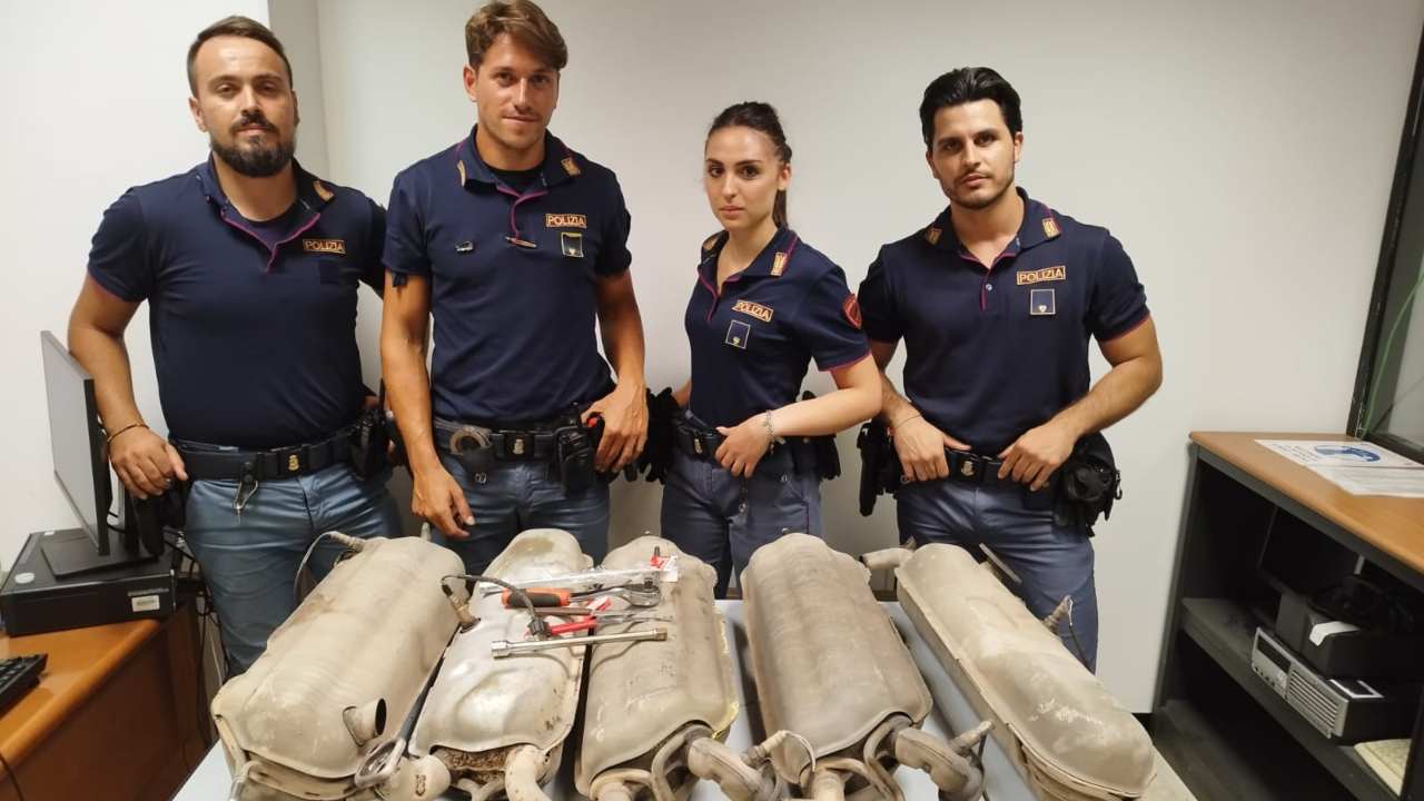Nell’immediatezza i poliziotti sono riusciti a bloccare l’uomo che stava chinato sotto l’auto mentre era intento nell’asportazione della marmitta e, subito dopo una breve perlustrazione nelle vie adiacenti, hanno scorto un’autovettura con a bordo un solo conducente le cui caratteristiche rispondevano alle descrizioni ricevute.