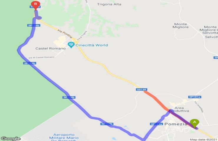 - Procedi in direzione nord-ovest verso Via Pontina Vecchia
