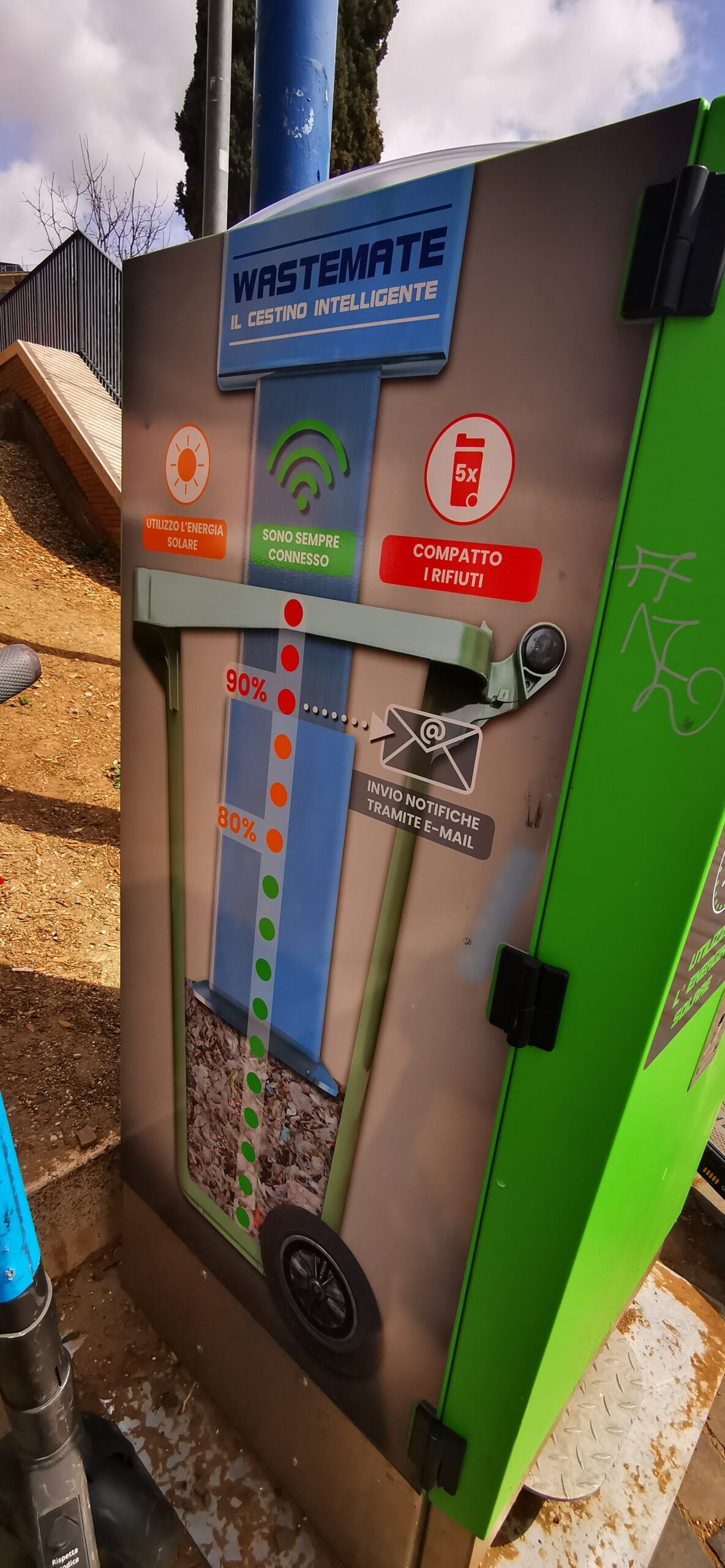 Sì, ma come sono fatti? Così come si può vedere nelle foto, sono realizzati in acciaio zincato e anti intrusione, e sono in grado di compattare i rifiuti al loro interno grazie a una pressa alimentata da un pannello fotovoltaico a energia solare. Per ora riguardano solo la raccolta indifferenziata. I sensori avvisano quando è necessario che vengano svuotati tramite un’apposita applicazione. Onde evitare inutili emissioni CO2. Inoltre, sono dotati di un pedale, che li rende igienici. Ma non è finita qui: contemporaneamente all’apertura partono anche delle musichette, tra cui quella in cui si simula il rumore dell’acqua e quella in cui ti applaude per ringraziarti del gesto civile che hai appena fatto.