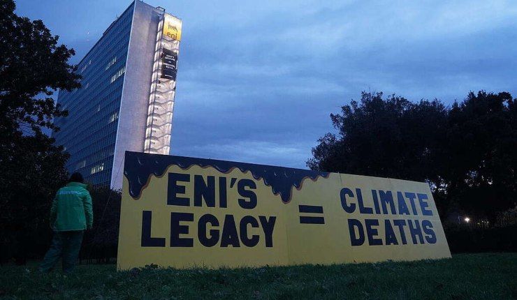 Questa mattina attiviste e attivisti di Greenpeace hanno scalato la sede di ENI e collocato un’installazione di 10 metri per denunciare, si legge in una nota del movimento, “le conseguenze delle sue attività sulle nostre vite”. L’iniziativa è scattata all’alba nel quartiere Eur, dove insiste il quartier generale della Multinazionale.