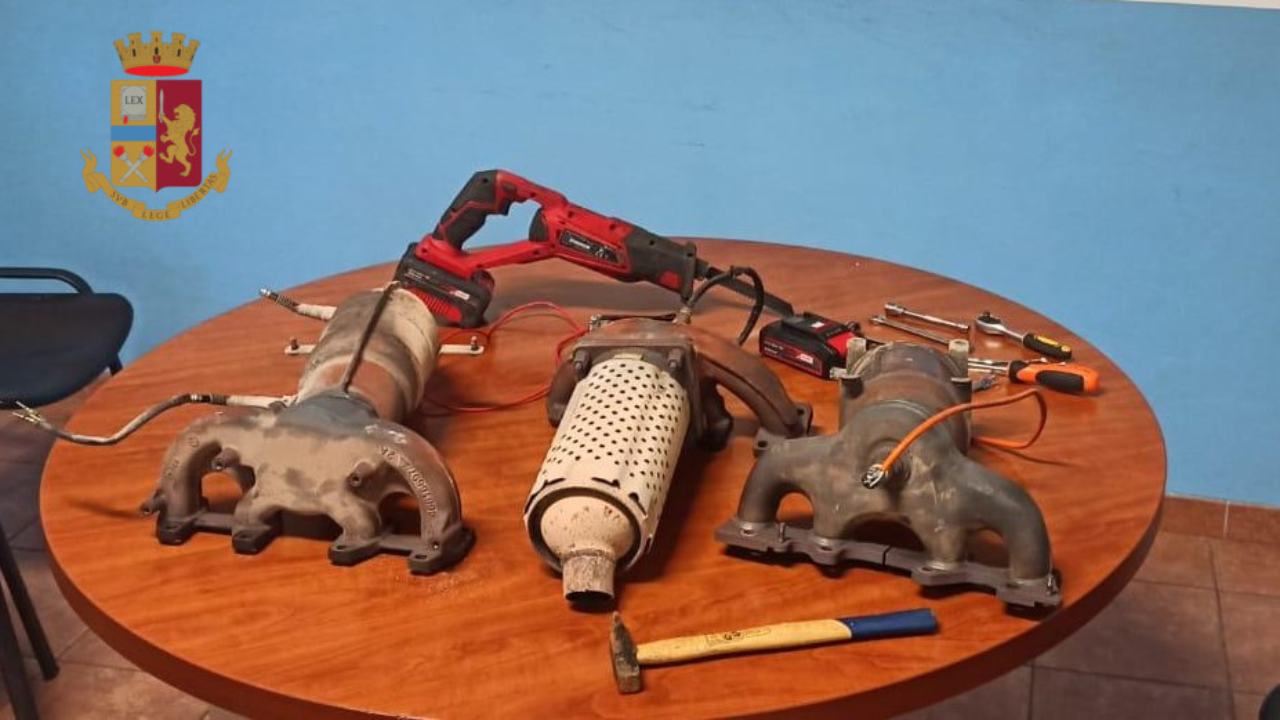I controlli estesi all’autovettura hanno permesso il rinvenimento di 3 catalizzatori probabilmente asportati da altre autovetture, un elettro sega, un cacciavite di 25 cm, un martello e altro materiale per lo scasso, nonché una centralina per l’accensione di auto. A questo punto, i poliziotti, tornati nel parcheggio in cui tutto è cominciato, hanno trovato un‘utilitaria con il cofano forzato al cui interno effettivamente mancava il catalizzatore.
